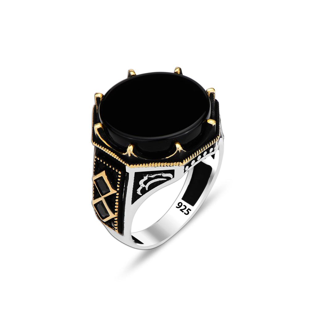 Мужское кольцо с ониксом, серебро 925 пробы ручной работы в Турции, уникальные дизайнерские украшения, черный оникс диаметром 18 мм, стильный подарок для него — купить товар онлайн с бесплатной доставкой до всему миру!