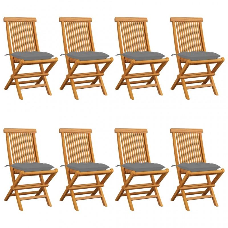 Día y Noche - Día y Noche Sillas de jardín 8 uds madera maciza de teca con cojines grises