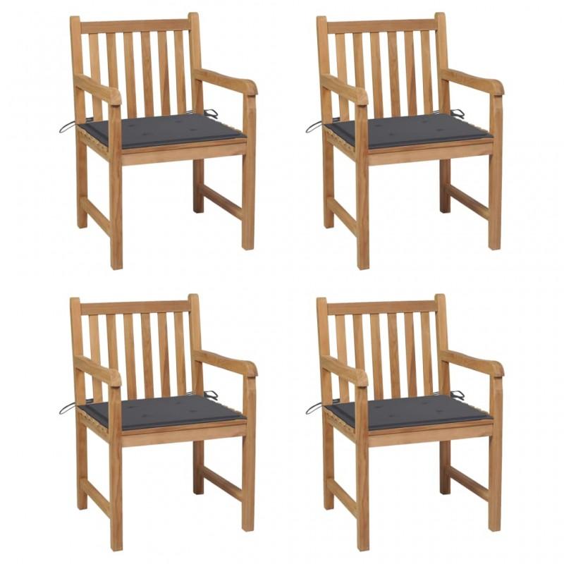 Día y Noche - Día y Noche Sillas de jardín 4 uds madera de teca y cojines gris antracita