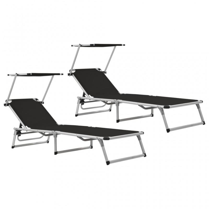 День и ночь - День и ночь Шезлонги складные с тентом 2 шт. алюминий и черный текстиль — купить товар онлайн с бесплатной доставкой до всему миру!