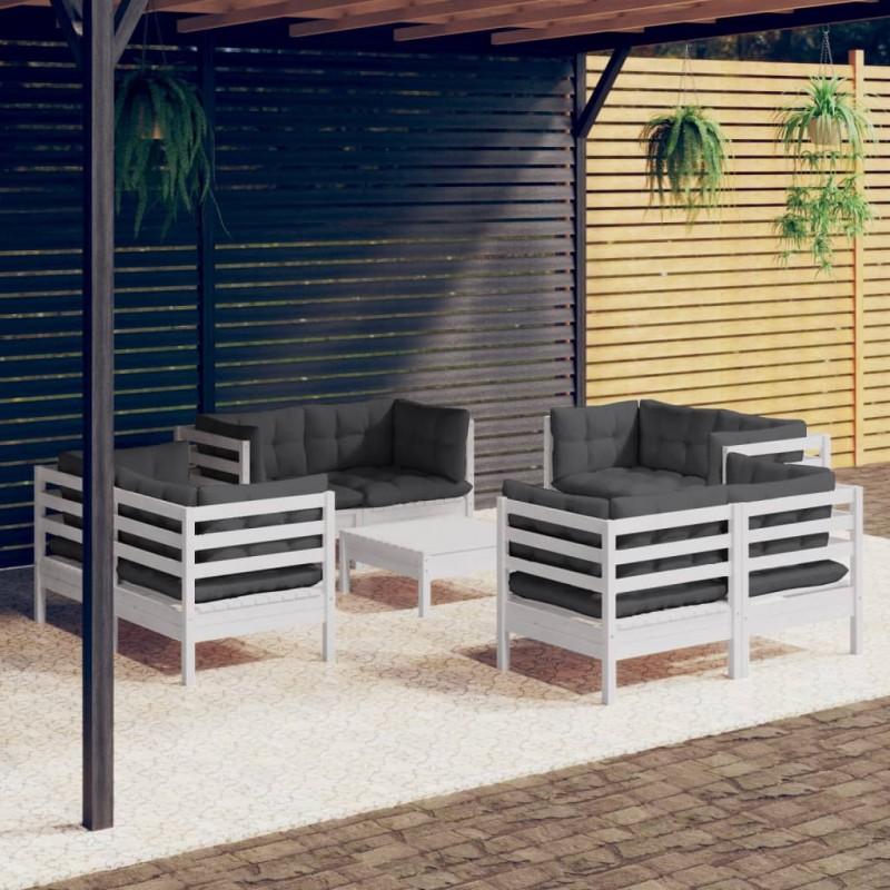 Día y Noche - Día y Noche Muebles de jardín 9 pzas con cojines antracita madera de pino