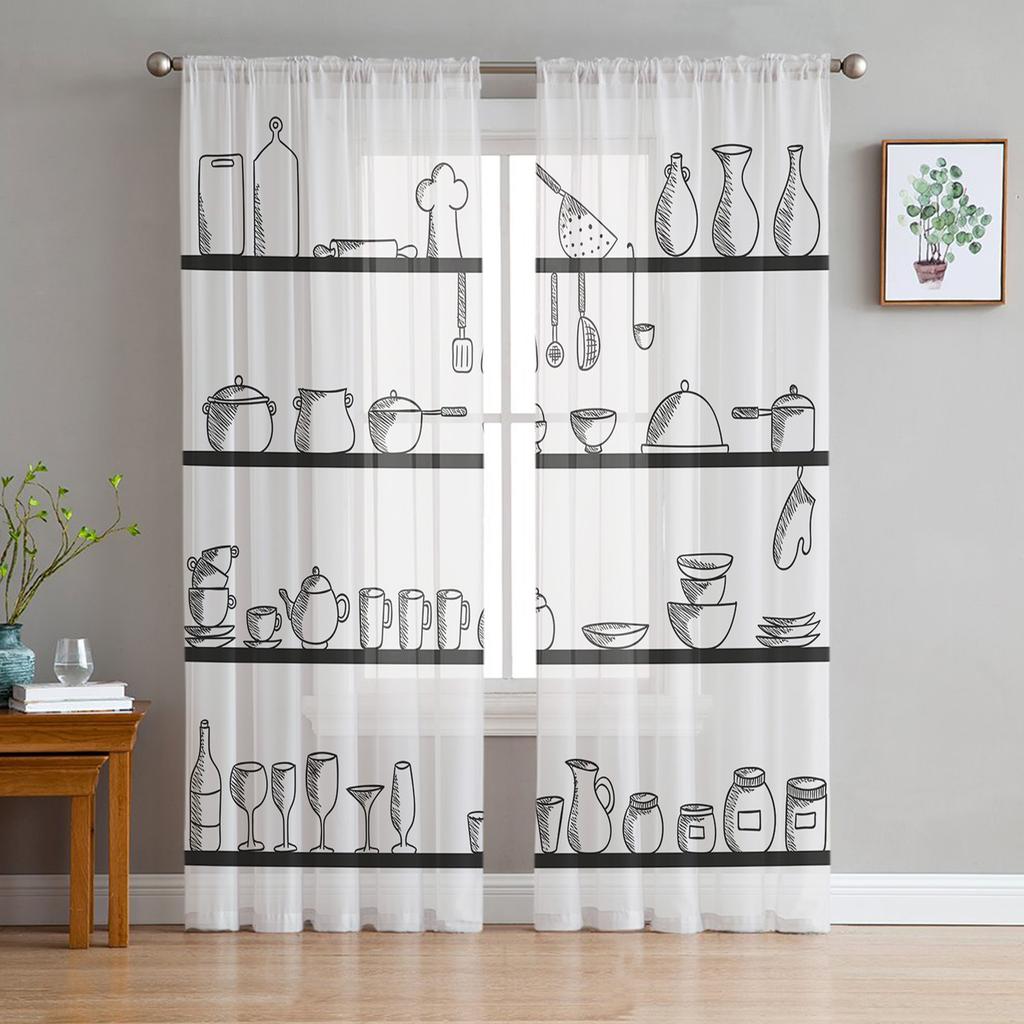 Кухонная утварь Полка Оконные занавески Прозрачный шифон Тюль Занавеска Главная Гостиная Фон Украшения