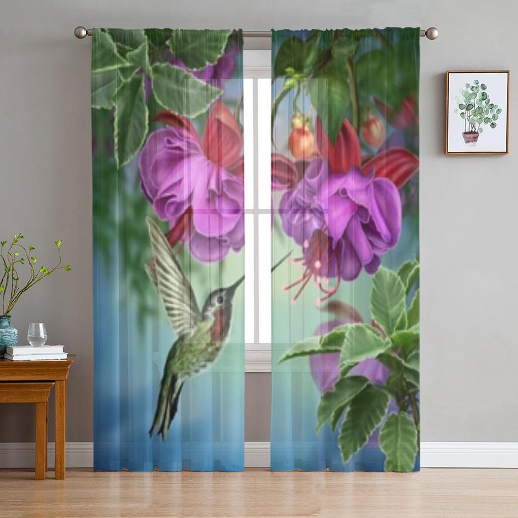 Шифоновые прозрачные шторы с колибри и ветками для гостиной, спальни, украшения, тюлевые шторы для окон, шторы