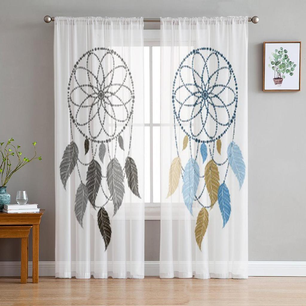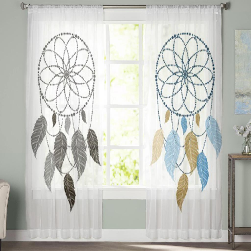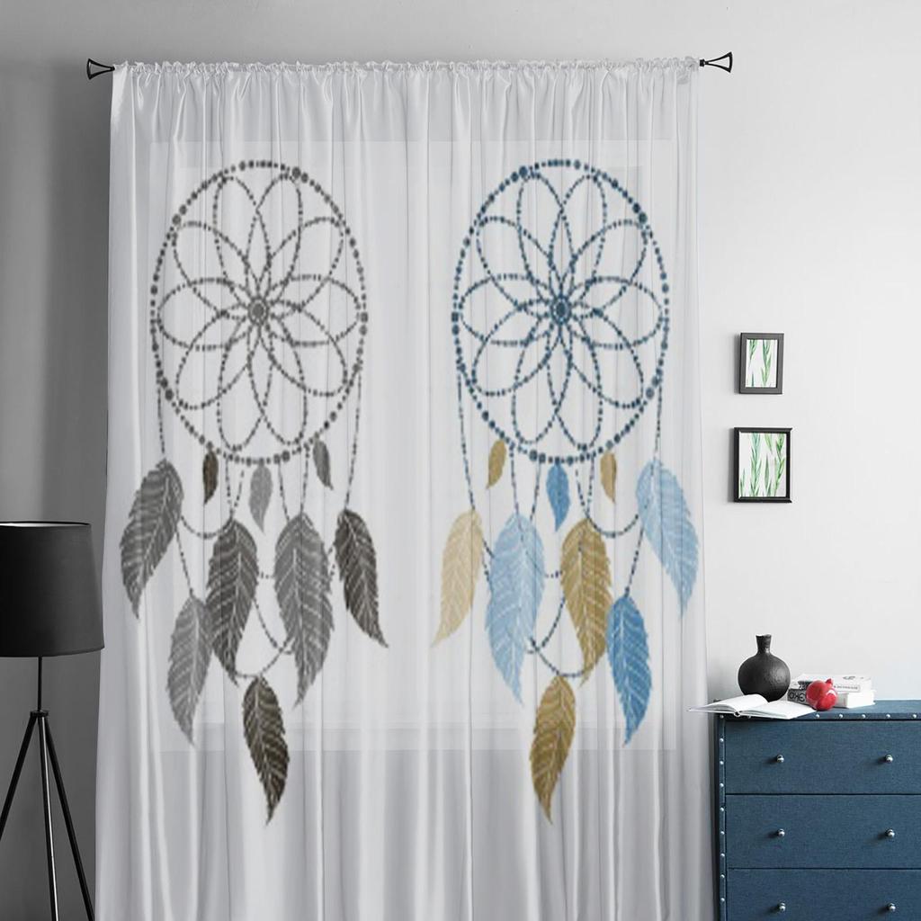 Тюлевые шторы «Ловец снов», нарисованные вручную перьями для гостиной, кухни, оконные шторы, домашний декор, прозрачные занавески для детской спальни