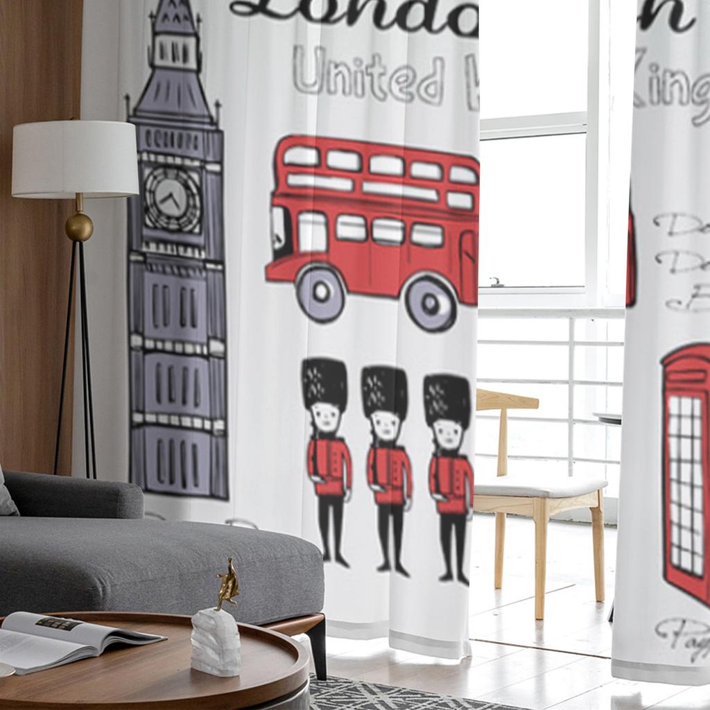 Лондон Автобус Велосипед Мультфильм Каракули Прозрачные Шторы Для Гостиной Спальни Тюль Шторы Кухни Оконные Обработки Панельные Шторы