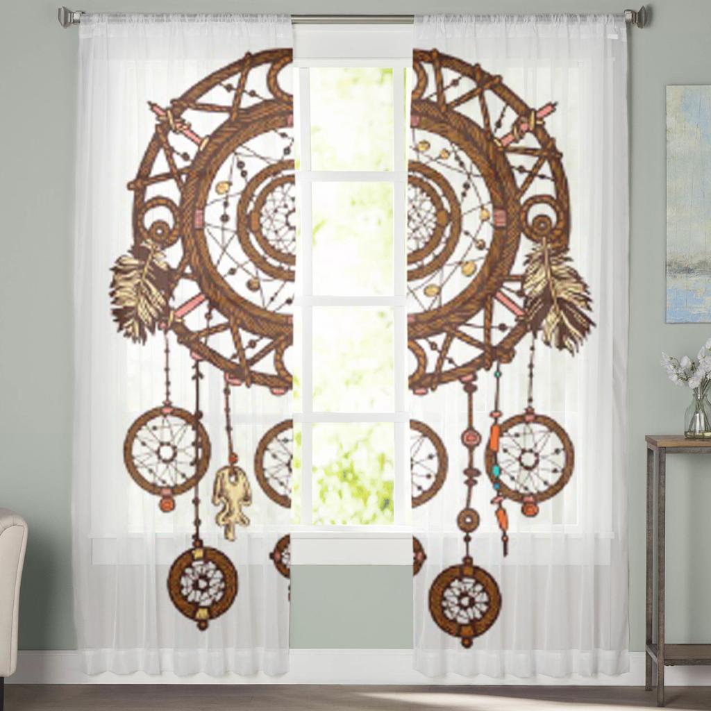 Нарисованные вручную шторы из тюля «Ловец снов» для украшения гостиной, современные вуалевые шифоновые шторы для спальни, прозрачные шторы