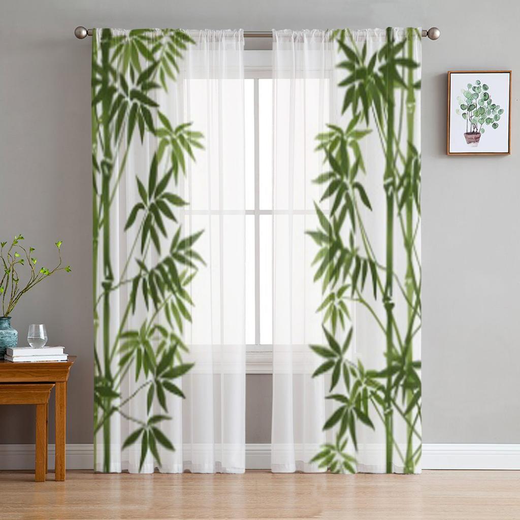 Зеленый бамбуковый лес тюль шторы для украшения гостиной современные вуали шифоновые шторы спальня прозрачная вуаль