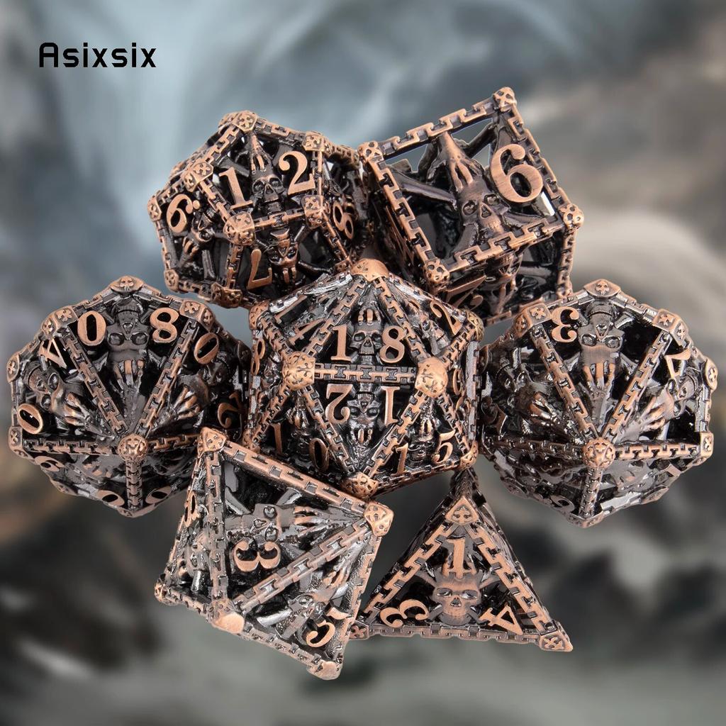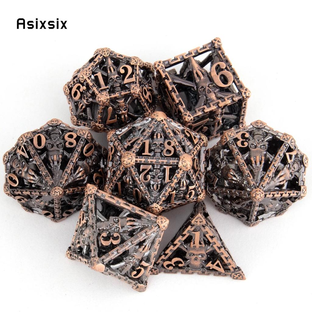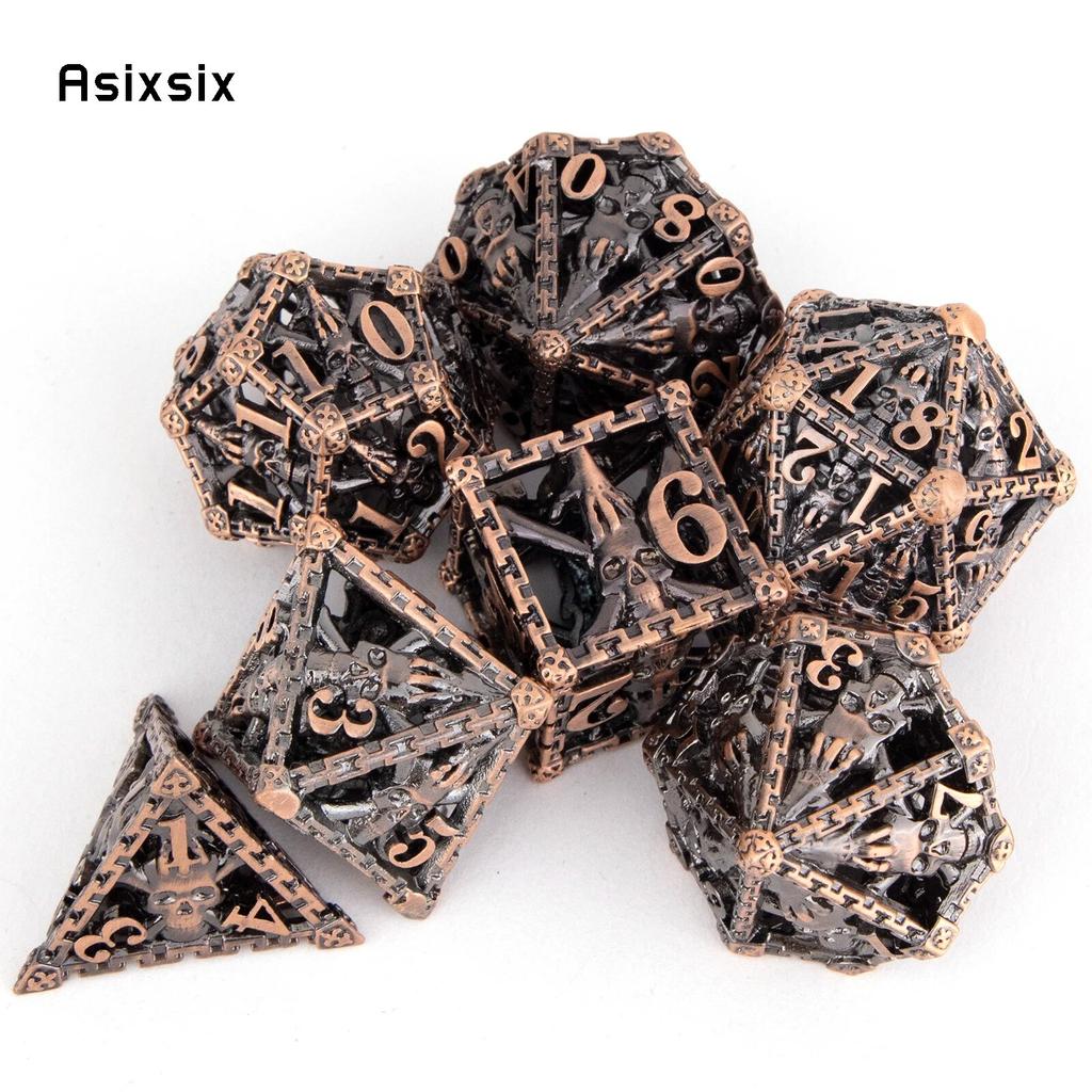 7 шт., металлические кубики с желтой рукой и головой черепа, набор полых металлических многогранных кубиков, подходит для ролевой игры, настольной игры, карточной игры