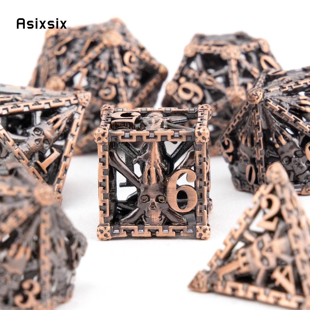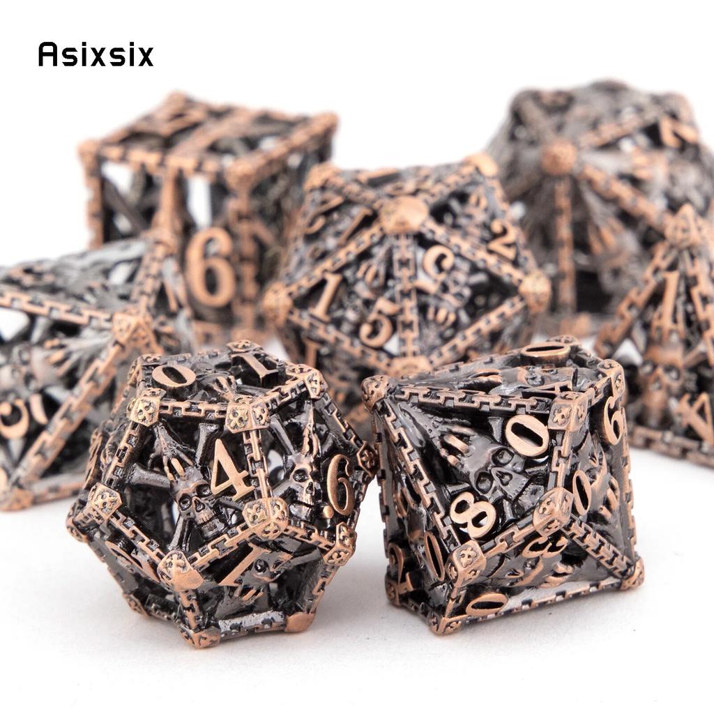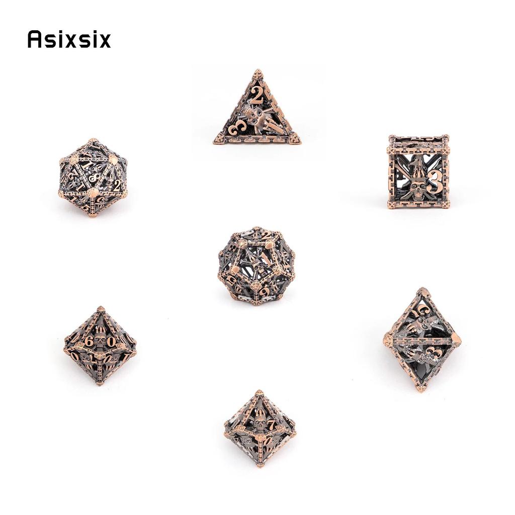 7 шт., металлические кубики с желтой рукой и головой черепа, набор полых металлических многогранных кубиков, подходит для ролевой игры, настольной игры, карточной игры