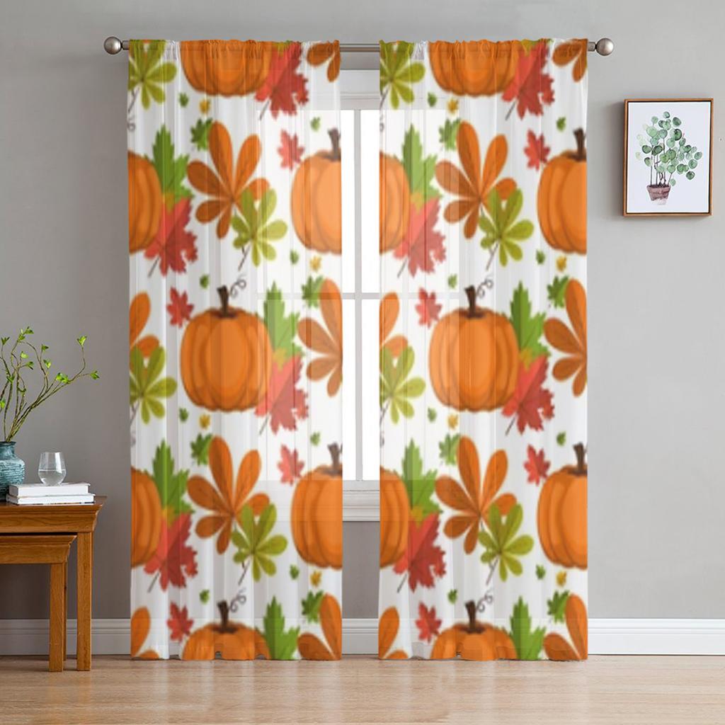 Тыквенные прозрачные занавески на окна для гостиной, спальни, современные вуалевые тюль-шторы, тканевые занавески для кухни