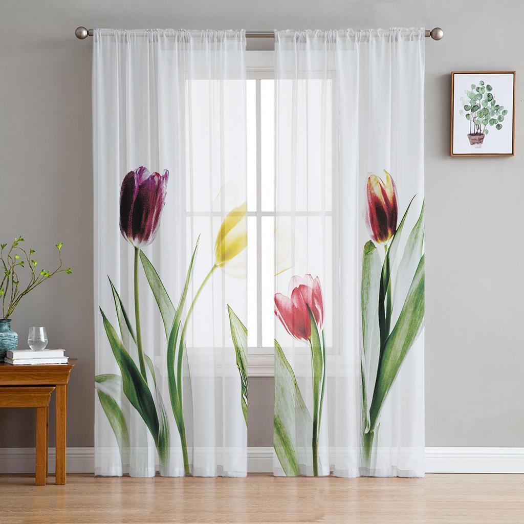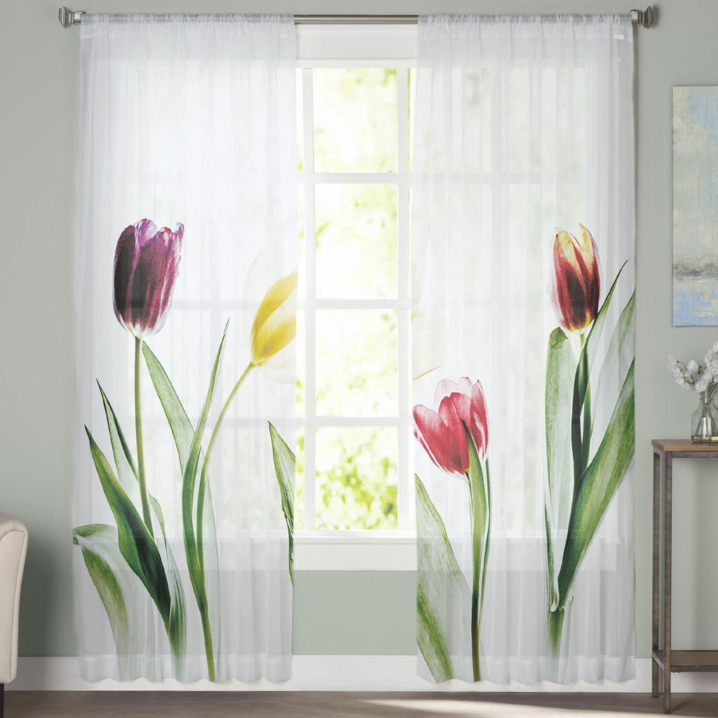 Цветные абстрактные цветочные тюлевые шторы для гостиной, кухни, прозрачные вуалевые шторы для спальни, оконные панели