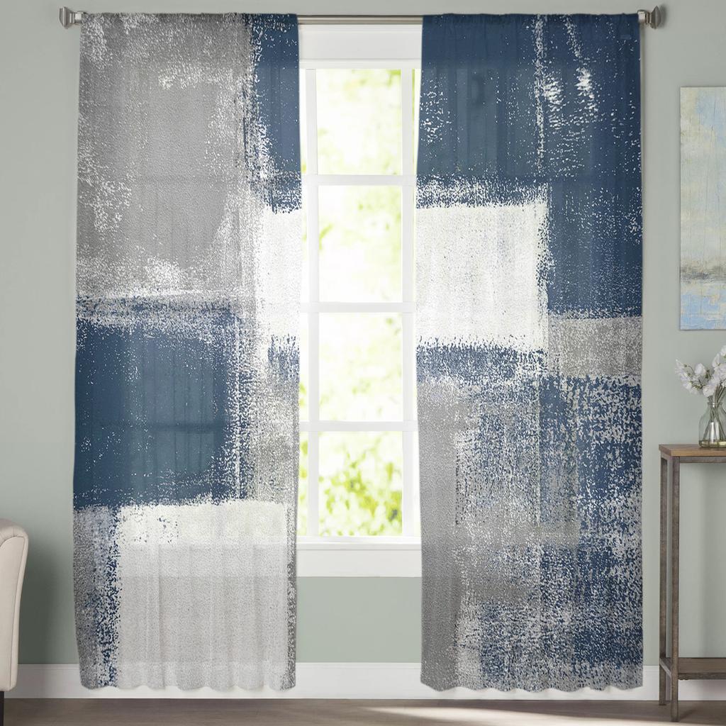 Картина маслом абстрактные геометрические тюлевые шторы для украшения гостиной современные шифоновые прозрачные вуали кухонные шторы