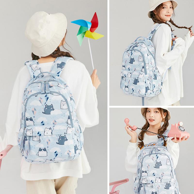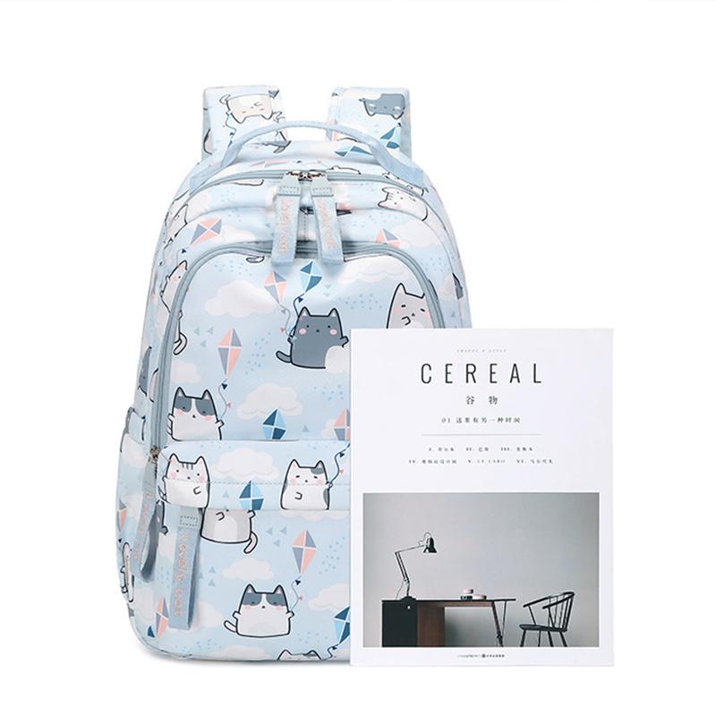Школьная сумка с мультяшным котом и принтом для младших школьников, женский рюкзак большой вместимости в консервативном стиле