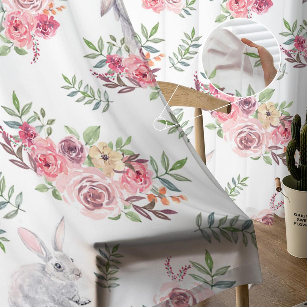 Весенние акварельные цветы кролик тюль шторы для гостиной домашний декор оконные занавески кухонные прозрачные вуалевые занавески