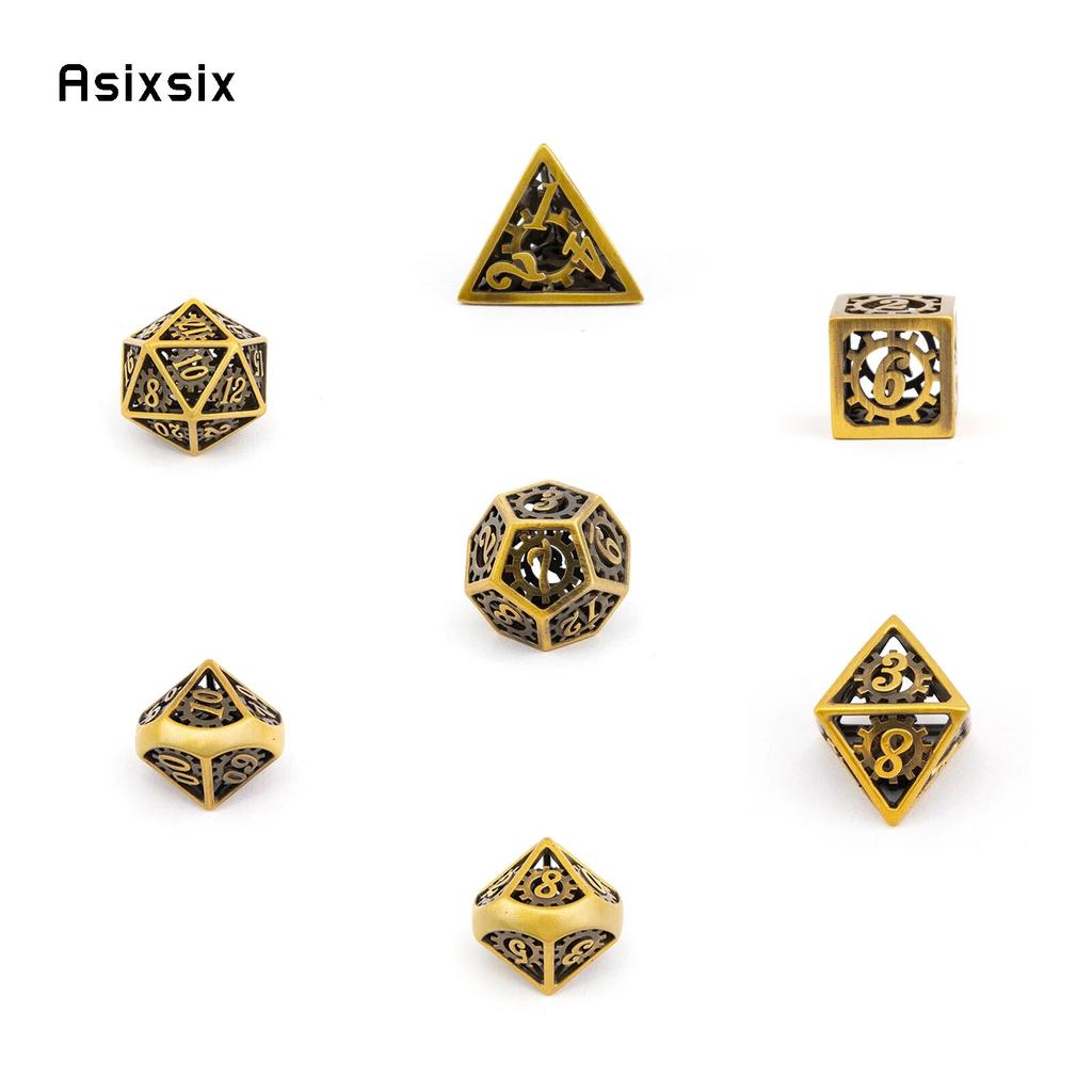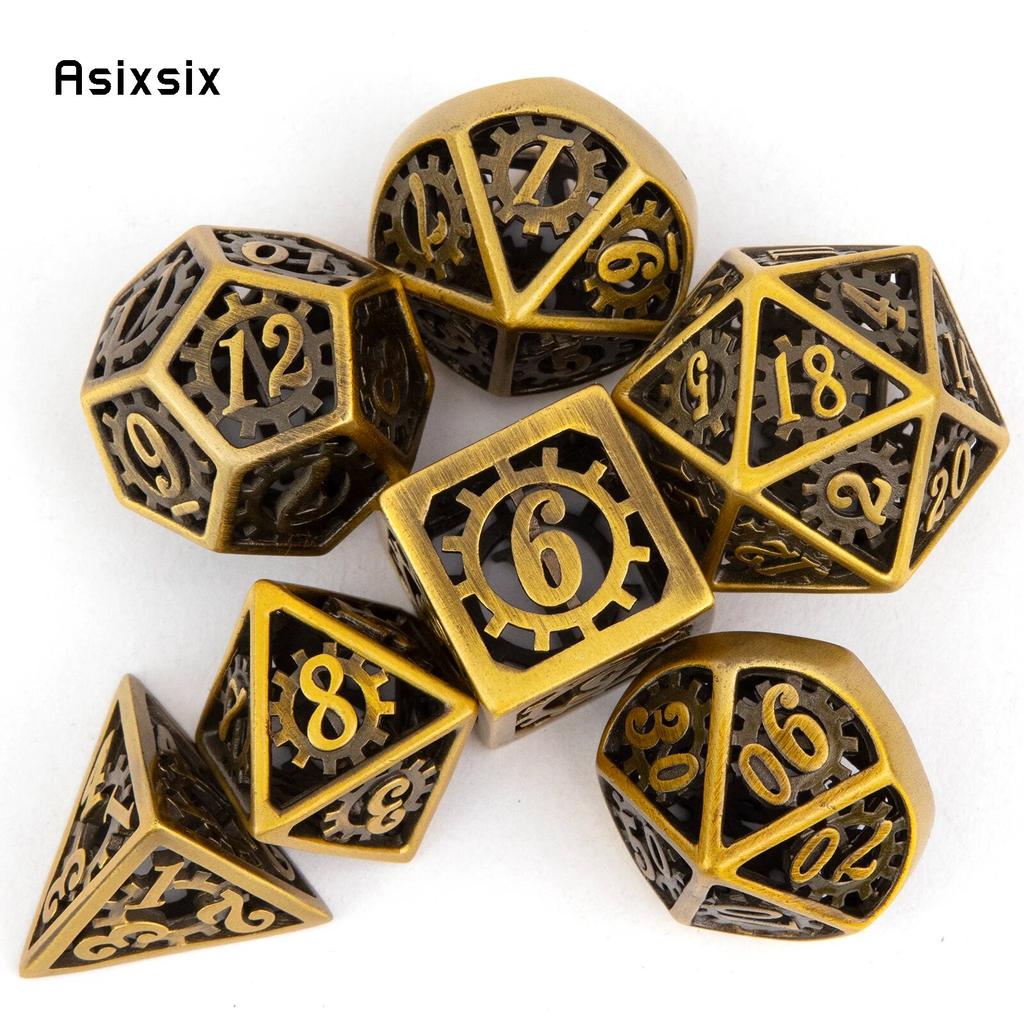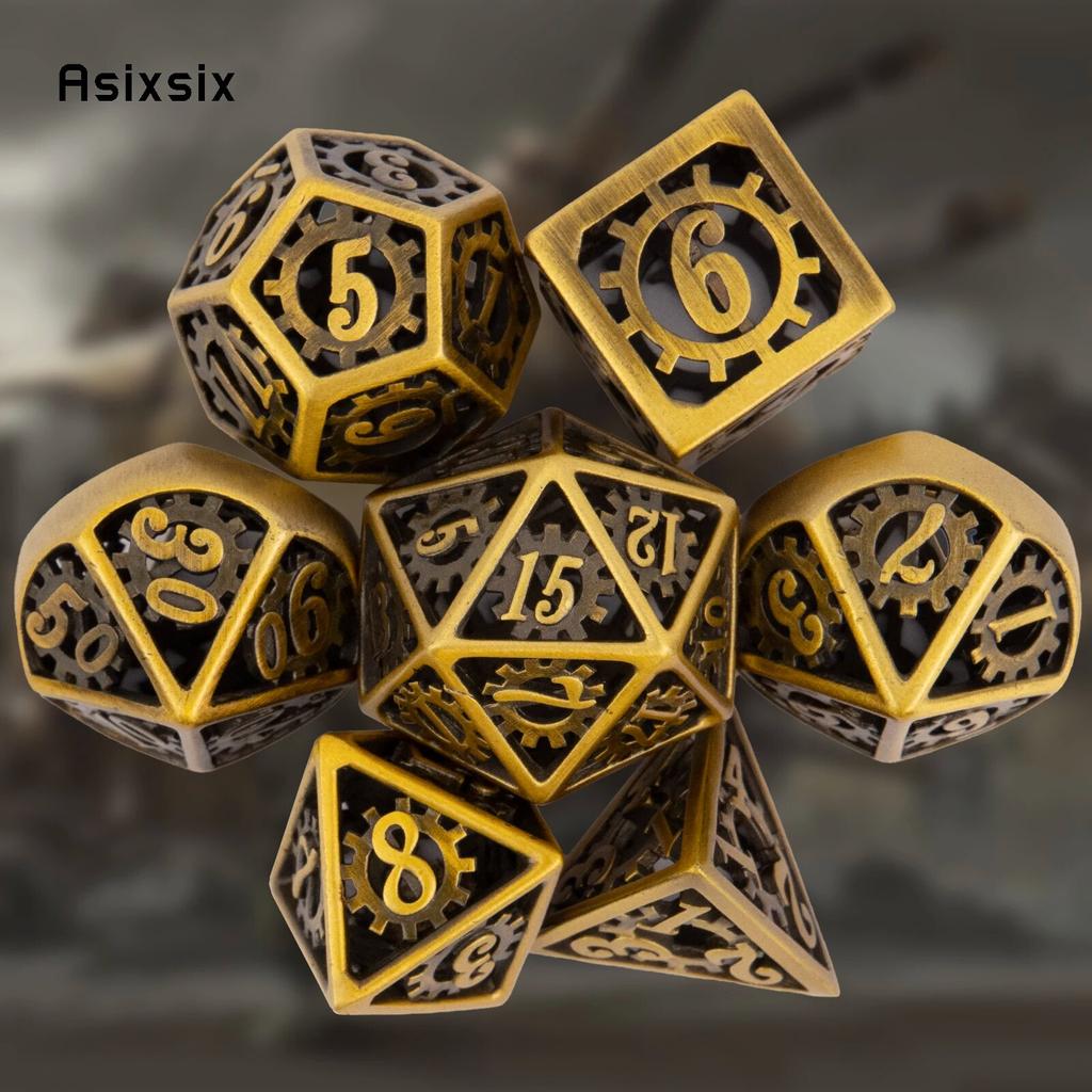 7 шт., металлические кубики с желтым зубчатым колесом, набор полых металлических многогранных кубиков, подходящий для ролевой игры, настольной игры, карточной игры