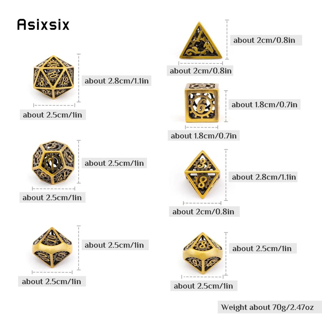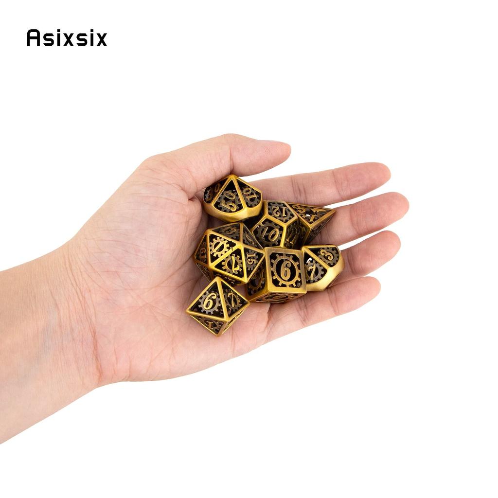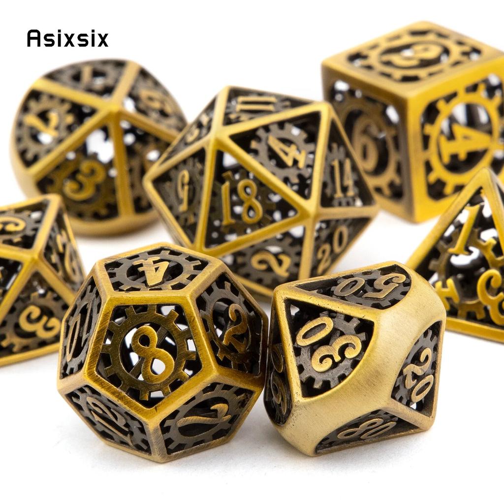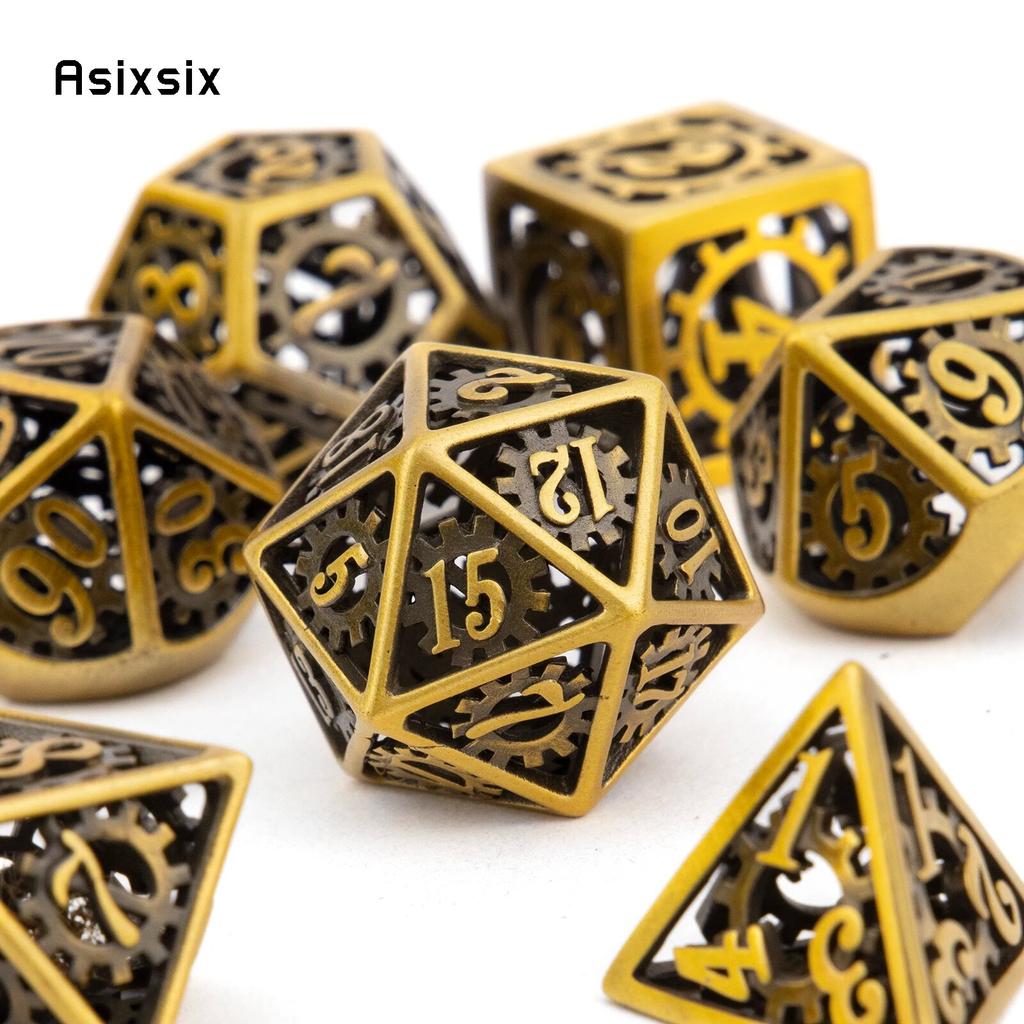 7 шт., металлические кубики с желтым зубчатым колесом, набор полых металлических многогранных кубиков, подходящий для ролевой игры, настольной игры, карточной игры