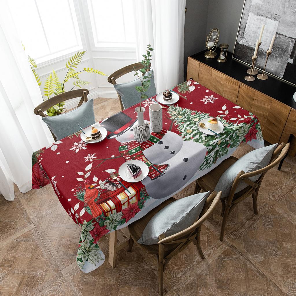 Рождественская скатерть «Пуансеттия» со снеговиком и снежинками, водонепроницаемая, свадебный декор, прямоугольная скатерть, рождественский декор обеденного стола