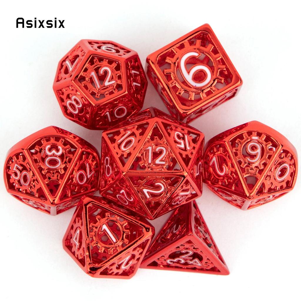 7 шт. красно-белые зубчатые колеса, металлические кубики, набор полых металлических многогранных кубиков, подходит для ролевой игры, настольной игры, карточной игры