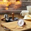 Характеристики: Круглый, с деревянной ручкой, с тиснением в виде цветка
