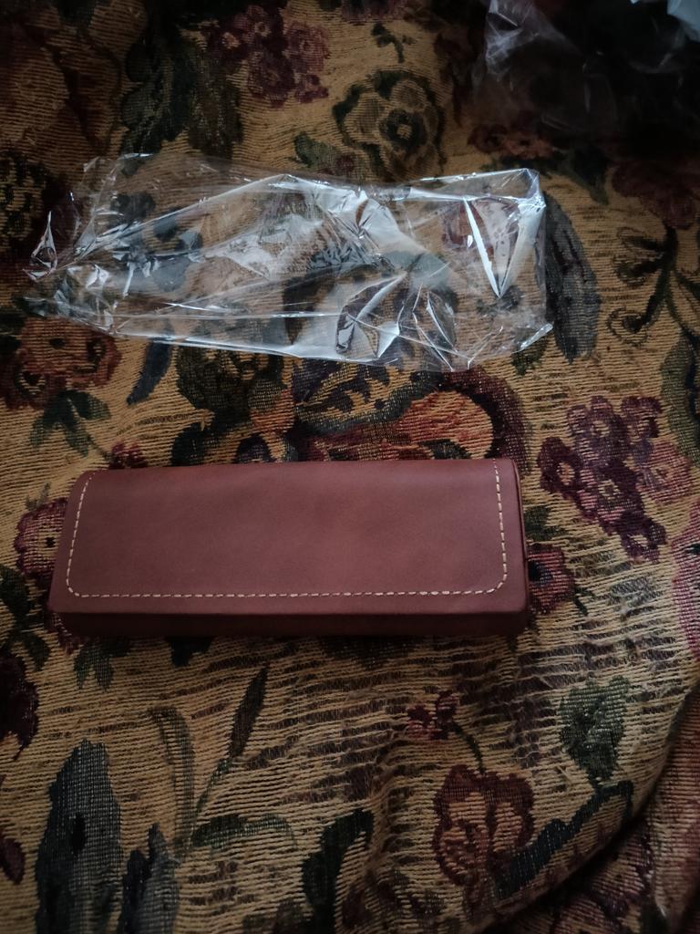 Доставка месяц в сборной посылке. Симпатичный футляр для очков. Выглядит богато. Жёсткий, с магнитной защёлкой, обтянут натуральной кожей. Брал жене на замену старого, потрепанного. Это у нее носимый комплект из сумочки. Надёжный, очки точно не сломаются. Рекомендую. Спасибо изготовителю, продавцу и Joom.