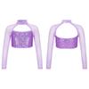 Детский кроп-топ с длинным рукавом, пайетками и сеткой для танцевальных выступлений
