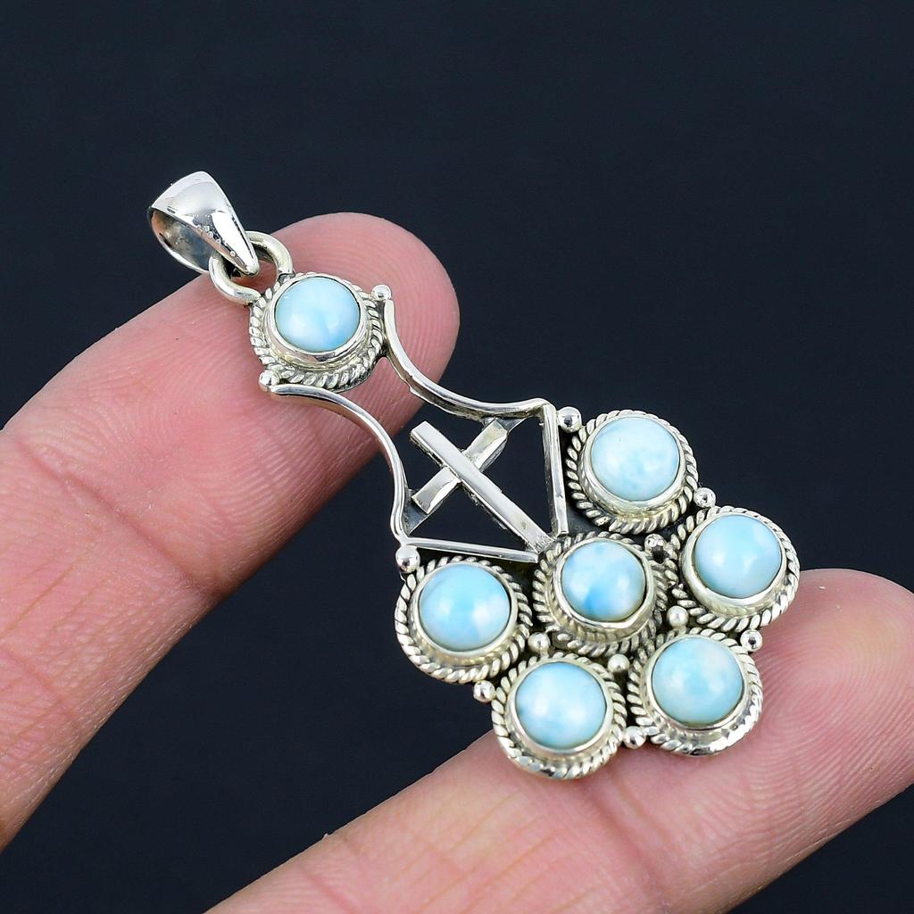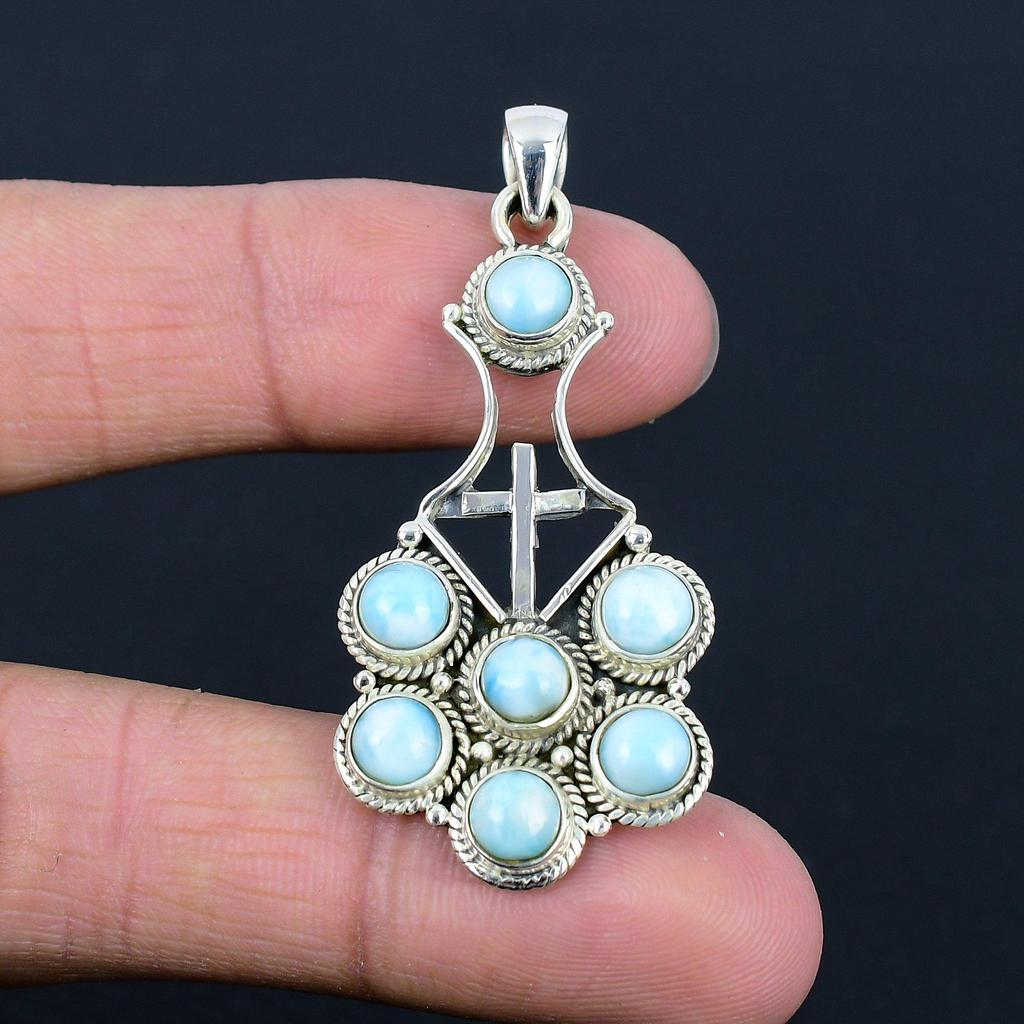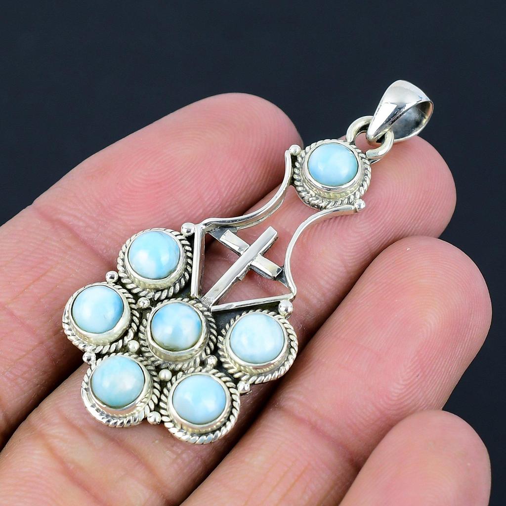 Подвеска из натурального камня Ларимар, серебро 925 пробы, крест, религиозная подвеска ручной работы, ювелирный подарок на День святого Валентина