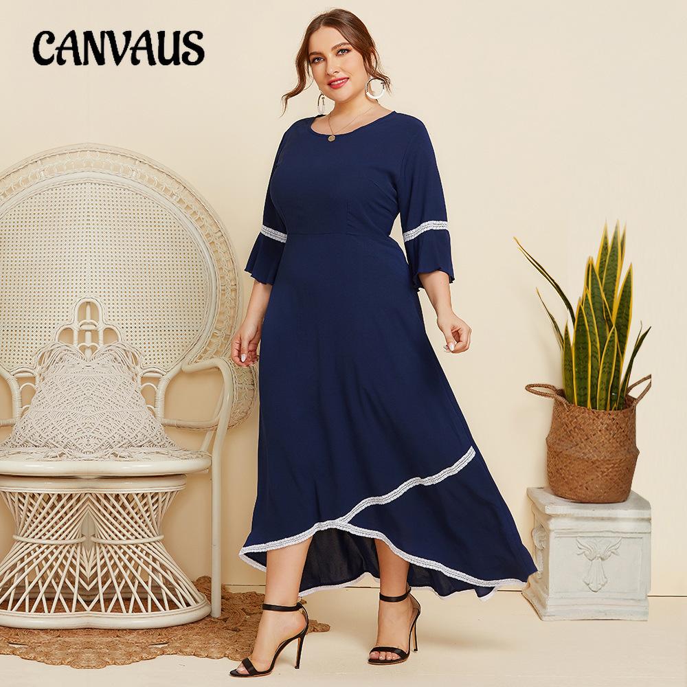 Весенне-летнее женское платье большого размера, кружевное платье с круглым вырезом и средним рукавом, однотонные свободные платья
