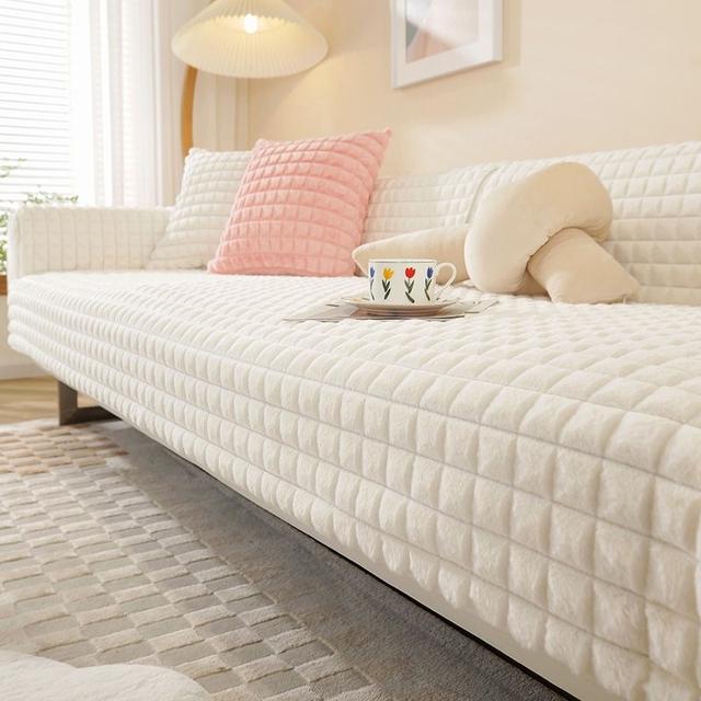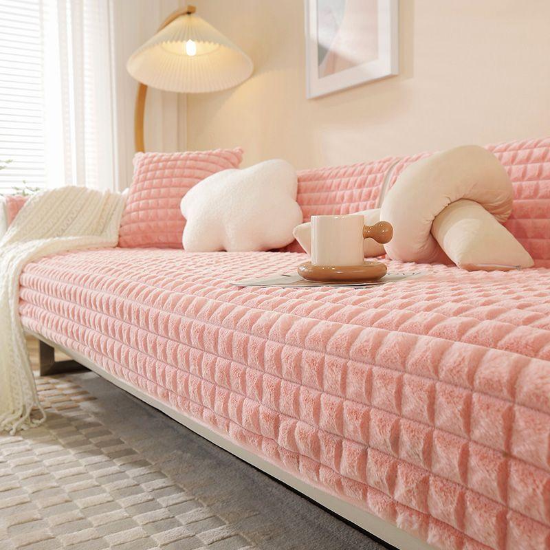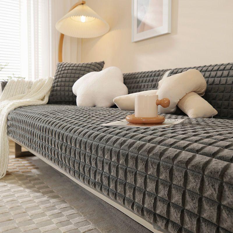 Утолщенный плюшевый чехол для дивана, скандинавский чехол для диванной подушки, полотенце, коврик, грелка, нескользящие чехлы для дивана для декора гостиной, однотонный цвет