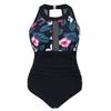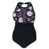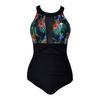 Купальник большого размера, цельный женский купальник с цветочным принтом, сетчатый купальник с замочной скважиной, лямкой на шее, глубоким вырезом и рюшами, купальник