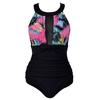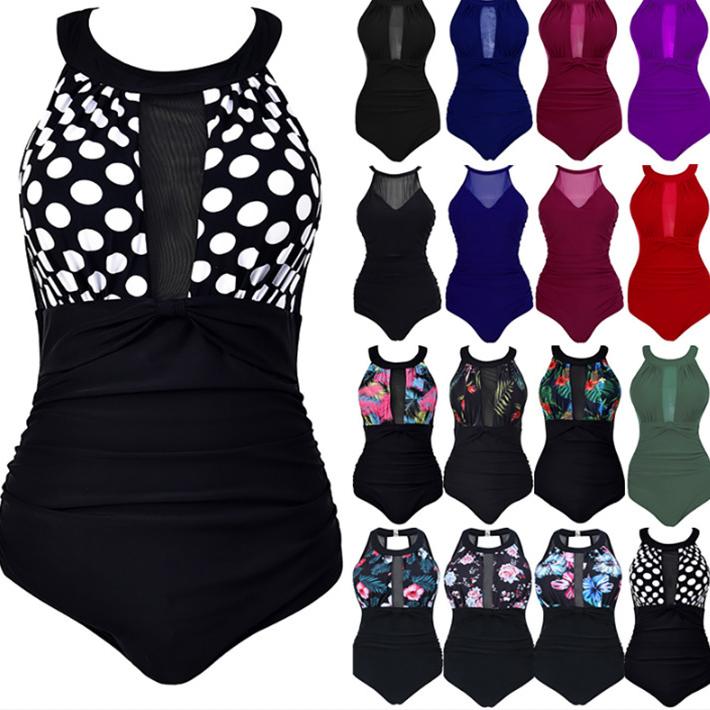 Купальник большого размера, цельный женский купальник с цветочным принтом, сетчатый купальник с замочной скважиной, лямкой на шее, глубоким вырезом и рюшами, купальник — купить товар онлайн с бесплатной доставкой по всему миру!