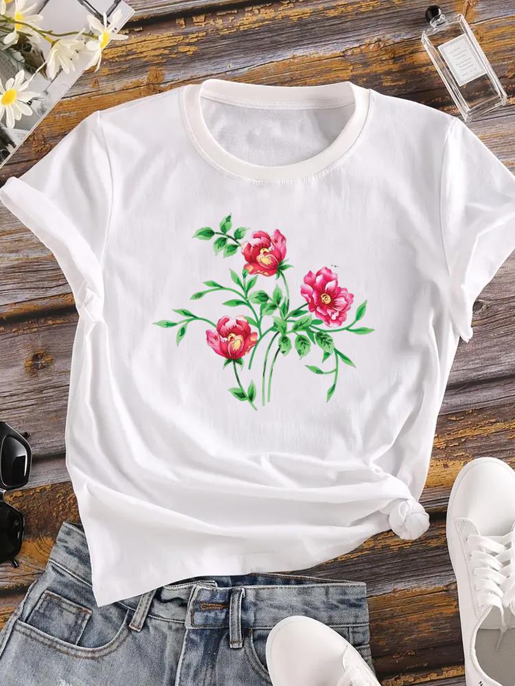 (Азиатский размер) Женская футболка с цветочным трендом, акварельная цветочная футболка с коротким рукавом, верхняя одежда, модный принт, женские повседневные женские футболки с графикой