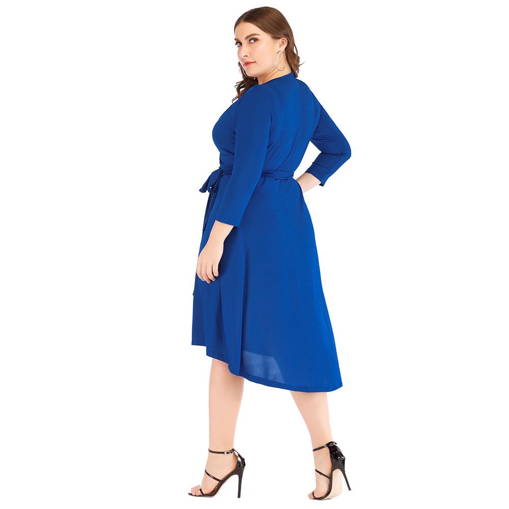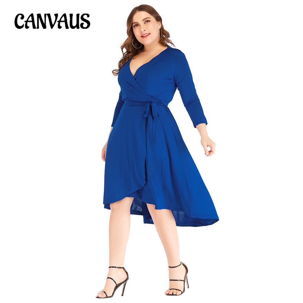 Весенне-летнее женское платье большого размера с v-образным вырезом, однотонное хип-платье с длинными рукавами