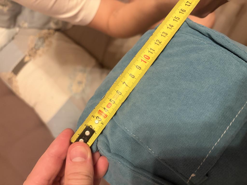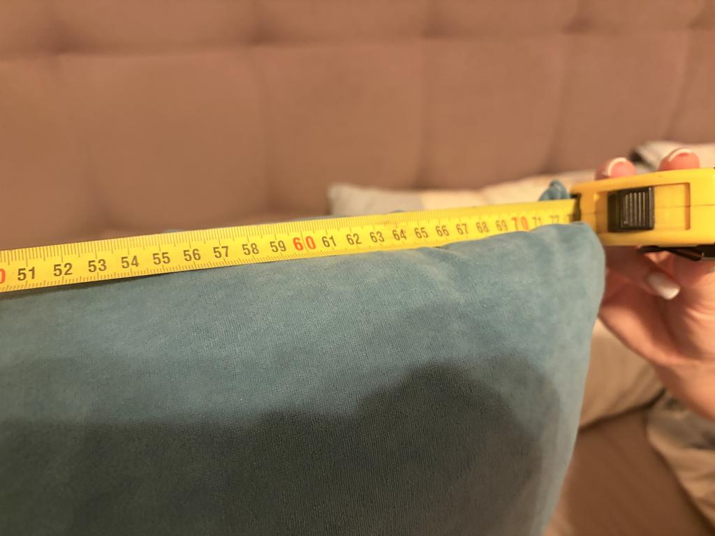 Добрый день, был заказан товар подушка: 1) зеленая 2) 80 * 50 * 20cm Пришла: 1)бледно зеленая (фото) 2)70-72 *50 * 15 см 3)там где пуговицы видна белая нитка