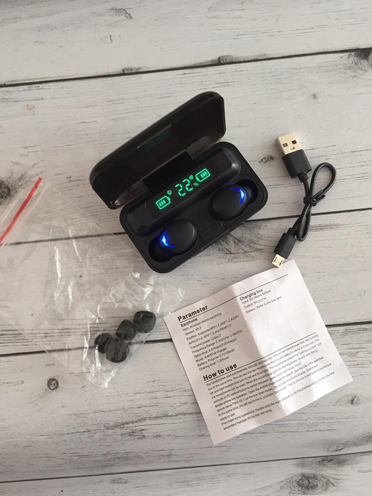 Беспроводная Bluetooth-гарнитура со светодиодной подсветкой в стильном кейсе от магазина Queed🎧 Всем солнечный приветик🤗! Заказываю беспроводные наушники уже не в первый раз для себя и моих родных, всё очень радует! ✔️упакованы наушники на совесть (сразу видно продавец заботиться о своём товаре и репутации) в индивидуальный зиппакет, в отдельный фирменный пакет, в несколько слоёв пупырчатой плёнки и почтовый пупырчатый пакет; ✔️доставка заняла 5 недель, где-то просто немного заблудился; ✔️наушники помещены в стильный кейс, крышка кейса прозрачная на прочном магните, видно уровень зарядки, на крышке защитная плёночка для предотвращения царапин; ✔️наушники заряжаются в кейсе, кейс имеет 2 разъёма для зарядки, ёмкость зарядного кейса составляет 4000 mAh, заряжаются быстро (горят красным), в рабочем состоянии (горят синим) заряда наушников хватает на 3 часа, от попадания пыли разъёмы защищены силиконовой заглушкой; ✔️в комплекте: кейс, 2 Bluetooth наушника, зарядный провод, 2 пары запасных амбушюр разных по размеру и инструкция; ✔️гарнитура подходит для любых устройств IOS и Android с функцией Bluetooth; ✔️на каждом наушнике обозначение левого и правого; ✔️функция шумоподавления, звучание громкое, без помех и шипений; ✔️короткое касание наушника - принятие вызова, включение наушника; ✔️2 коротких (быстрых) касания в правом наушнике - переключение трека; ✔️длительное нажатие - звук; ✔️цветовая гамма: чёрная. Очень довольна приобретением! Товар и продавца рекомендую всеми ручками👍🏼! Спасибо продавцу и любимому Джум! Всем приятных покупок!