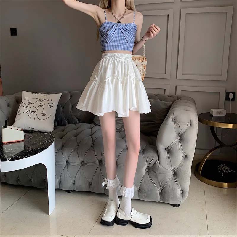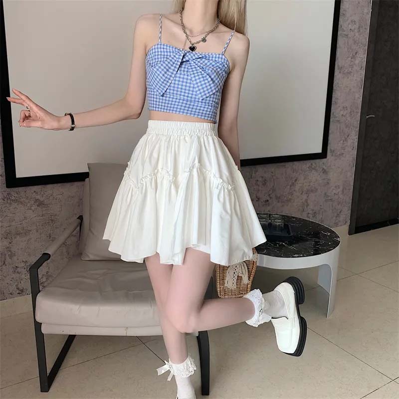 Белая женская юбка-тортик с высокой талией, тонкая юбка трапециевидной формы в европейском стиле ретро Pengpeng, милая, милая весна и лето