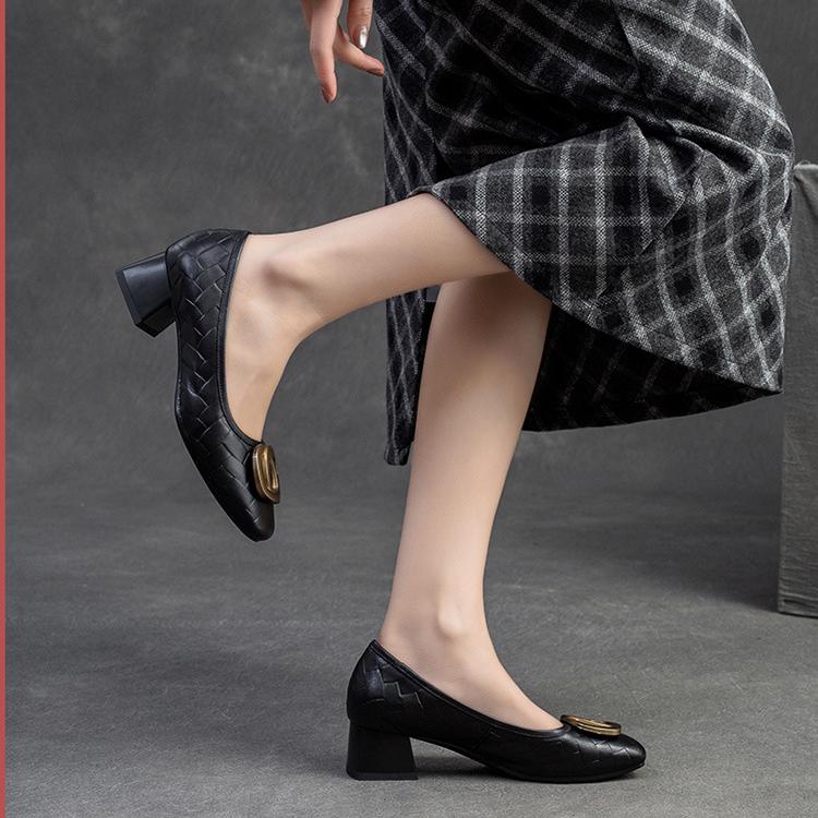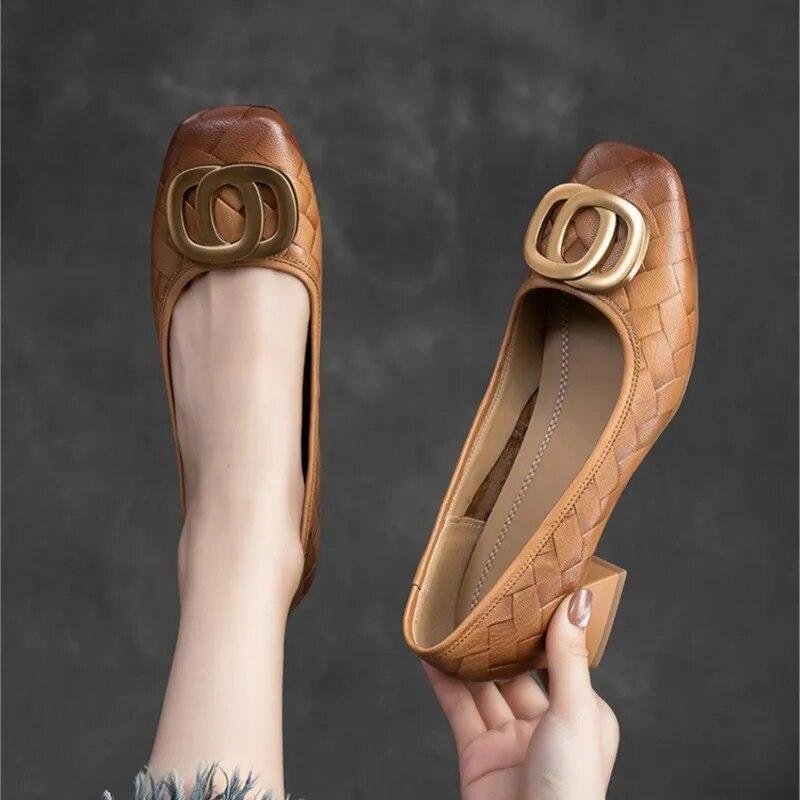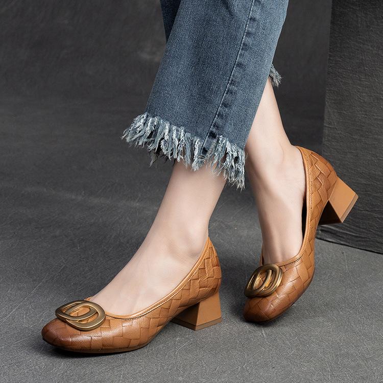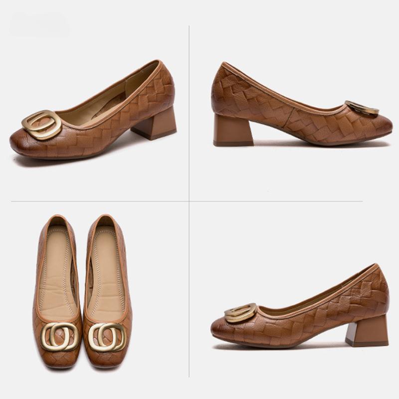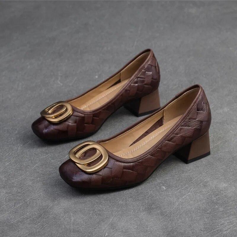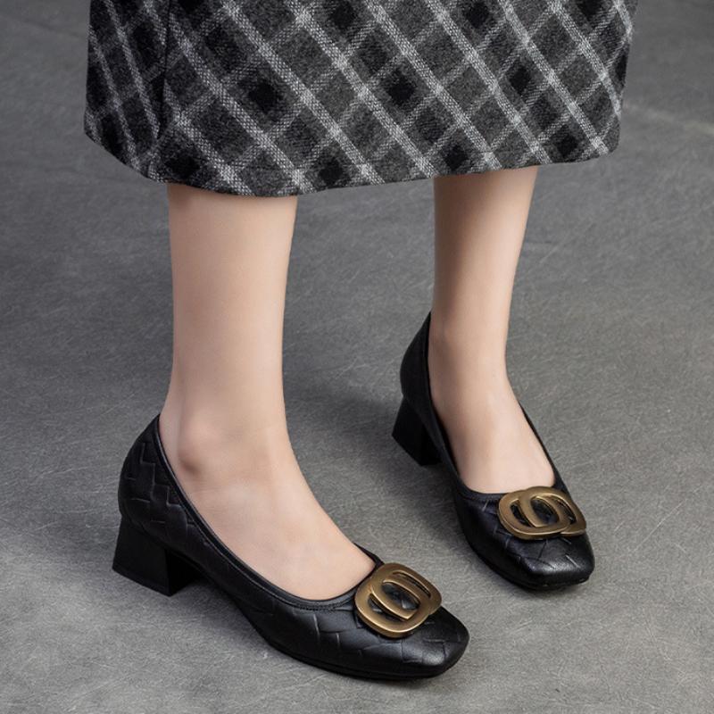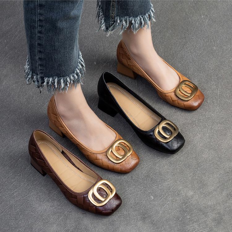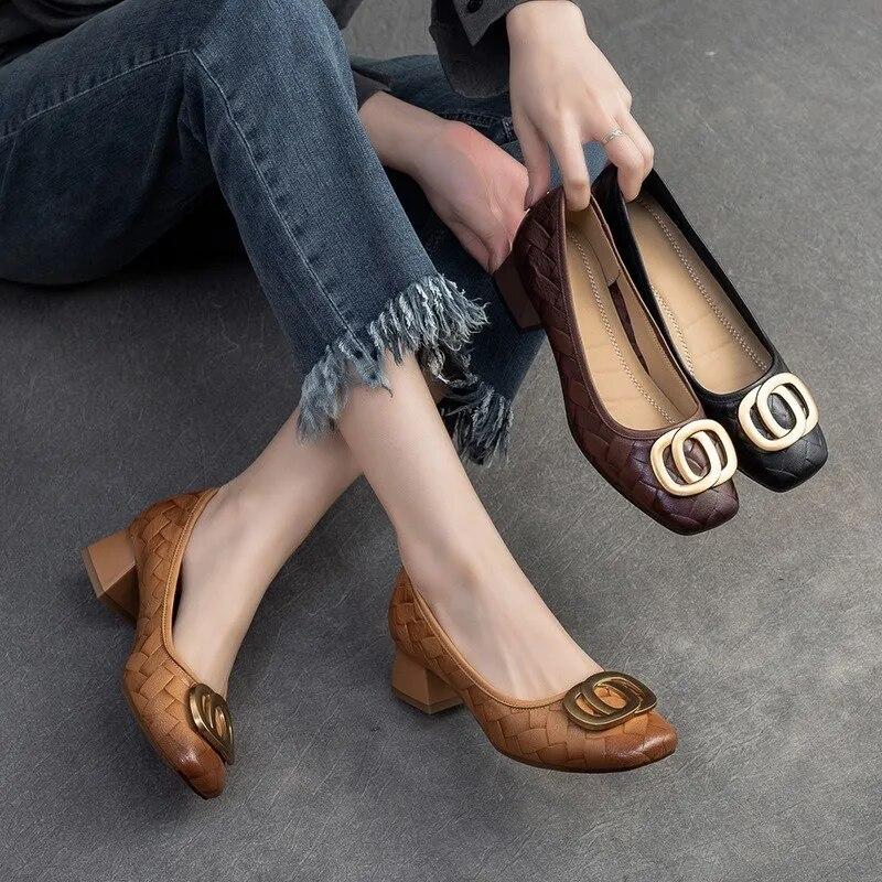 Johnature Универсальные туфли-лодочки с металлической пряжкой на толстом каблуке, модные женские туфли на каблуке из натуральной кожи с квадратным носком