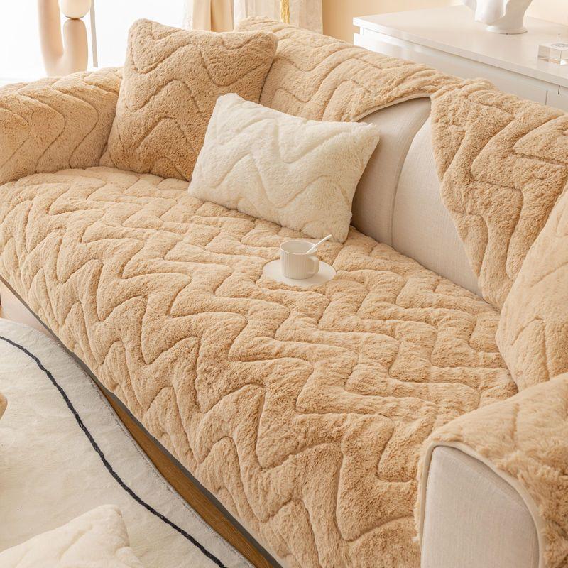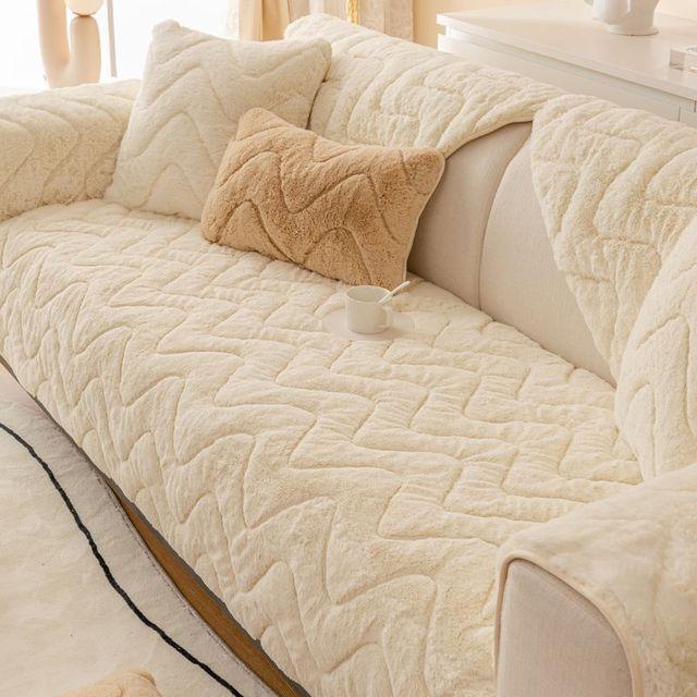 Утолщенный плюшевый чехол для дивана, дышащий нескользящий коврик для дивана, зимний теплый скандинавский диван-полотенце, подушка для дивана для гостиной, домашний декор