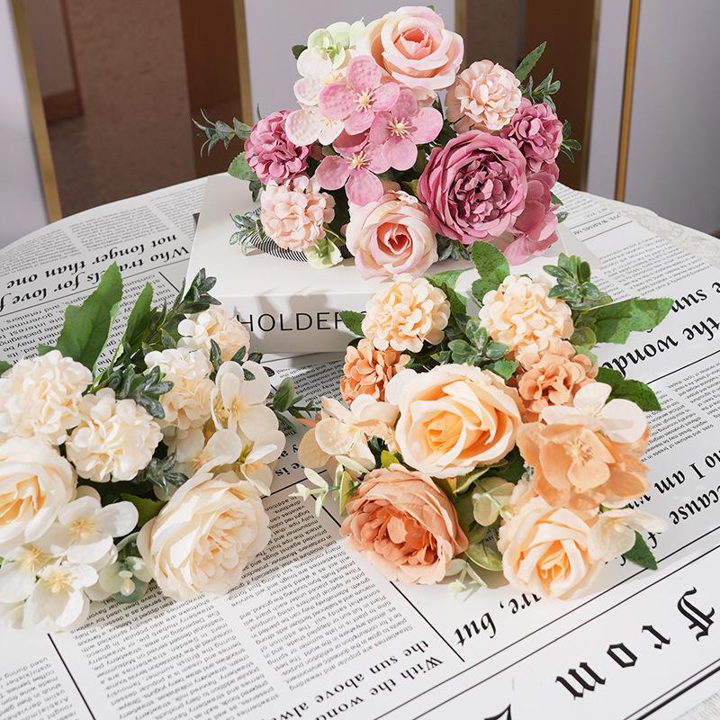 Пион, гортензия, роза, имитация цветов, свадебное украшение для дома, украшение для стола, фотография, искусственные цветы