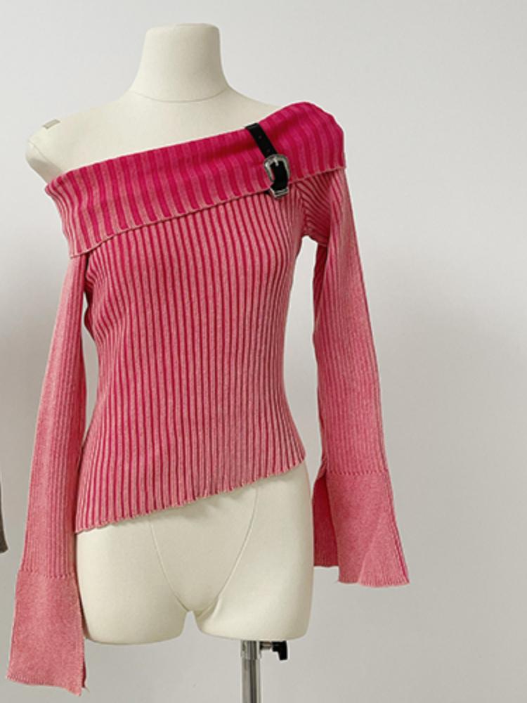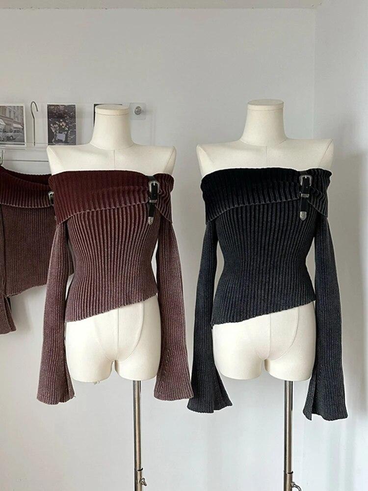 Модный простой классический вязаный свитер с вырезом с открытыми плечами, пуловеры с длинными рукавами и расклешенными рукавами, осень-зима, уличная одежда Y2K