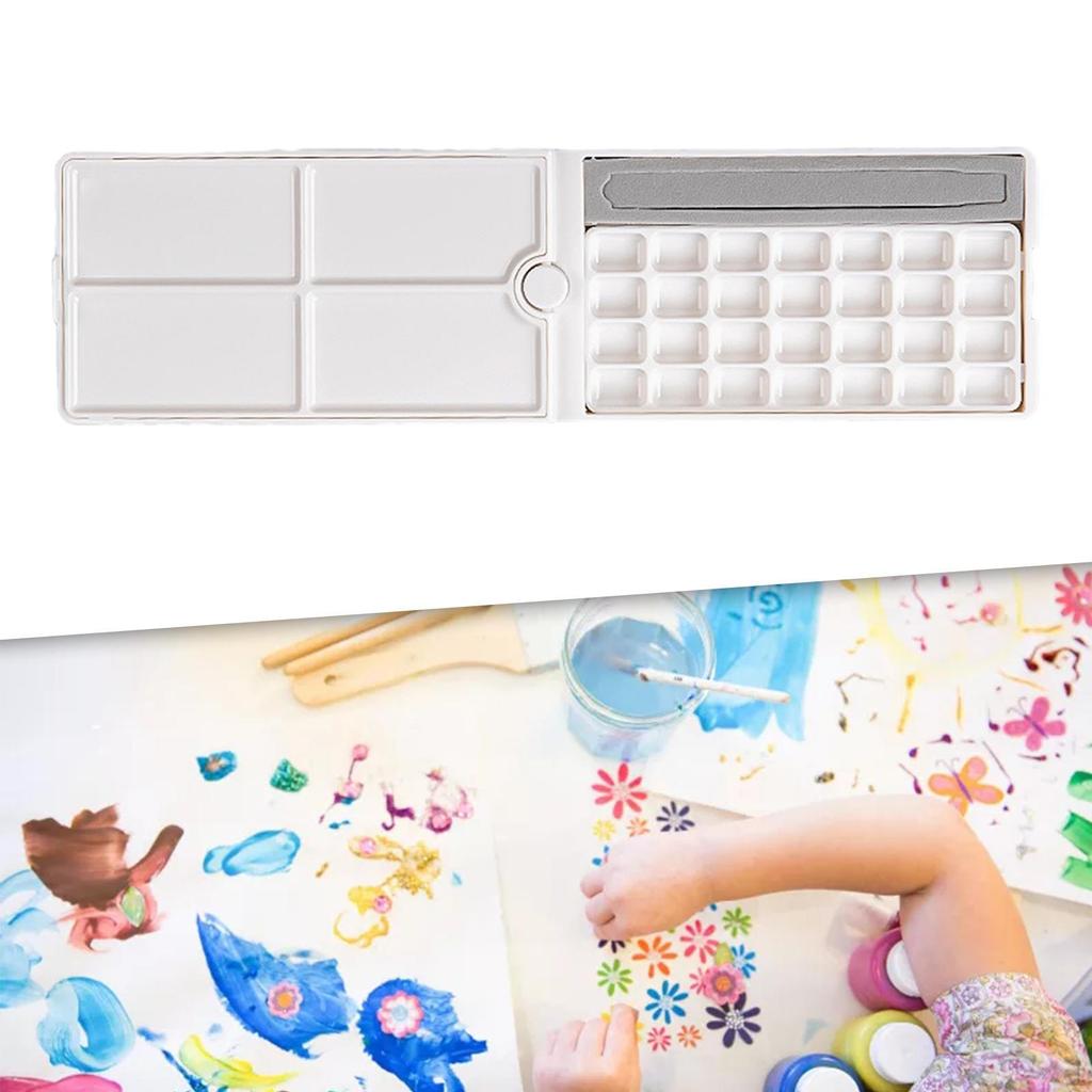 Акварельная палитра. Лоток для смешивания гуаши. Пустые дорожные эскизы. Коробка с красками.