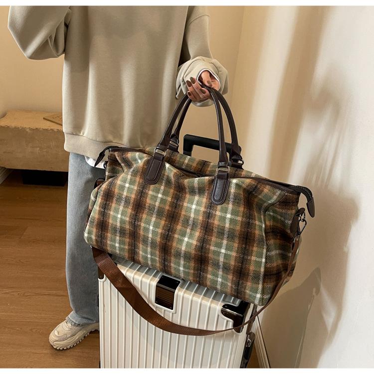 Портативная дорожная сумка большой вместимости, ретро клетчатая сумка через плечо для фитнеса, дорожная сумка для багажа на короткие расстояния