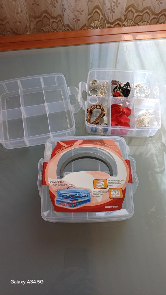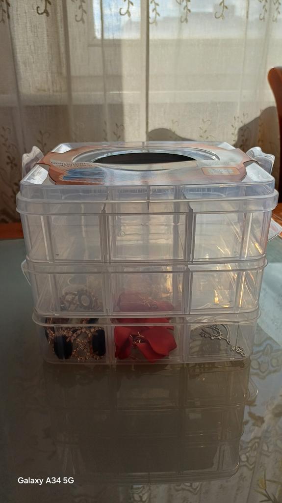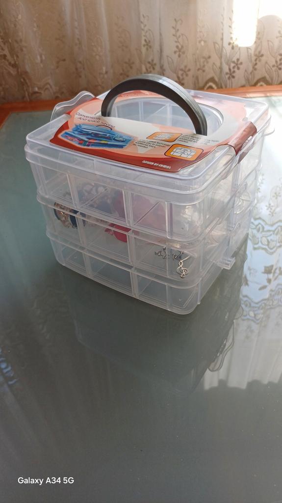 Отличная коробочка , органайзер, для хранения бижутерии, очень удобная для меня. В ней 3 яруса, в каждом ярусе по 6 отделений, достаточно глубокие, на крышке есть ручка, удобно переносить... Вот поеду летом на дачу, сложу все, что планирую носить и вперед... Очень функциональная штучка, рекомендую!