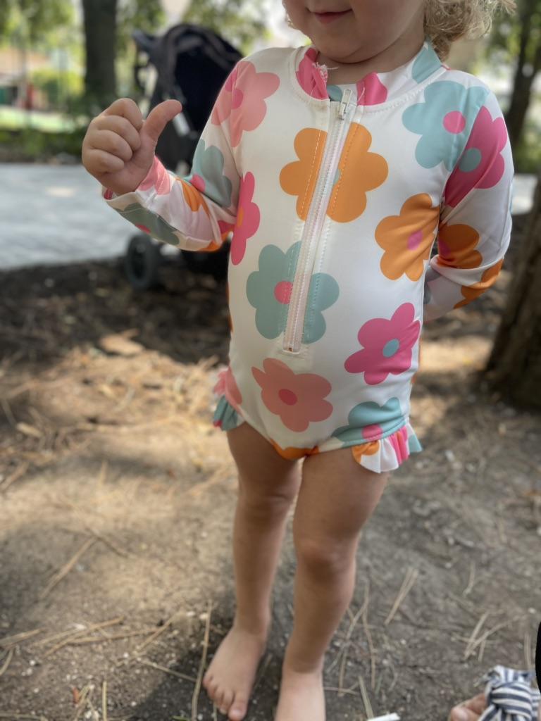 Детские купальники для маленьких девочек, 12 месяцев, 18 месяцев, 24 месяца, 3 года, 4 года, 5 лет, летние комбинезоны с длинными рукавами и оборками на молнии с цветочным принтом, купальники, пляжная одежда, купальные костюмы