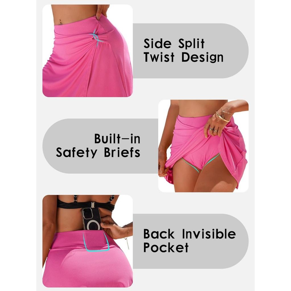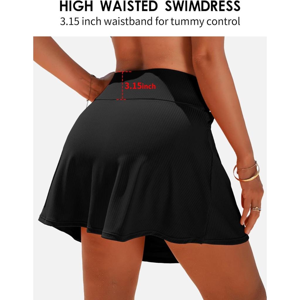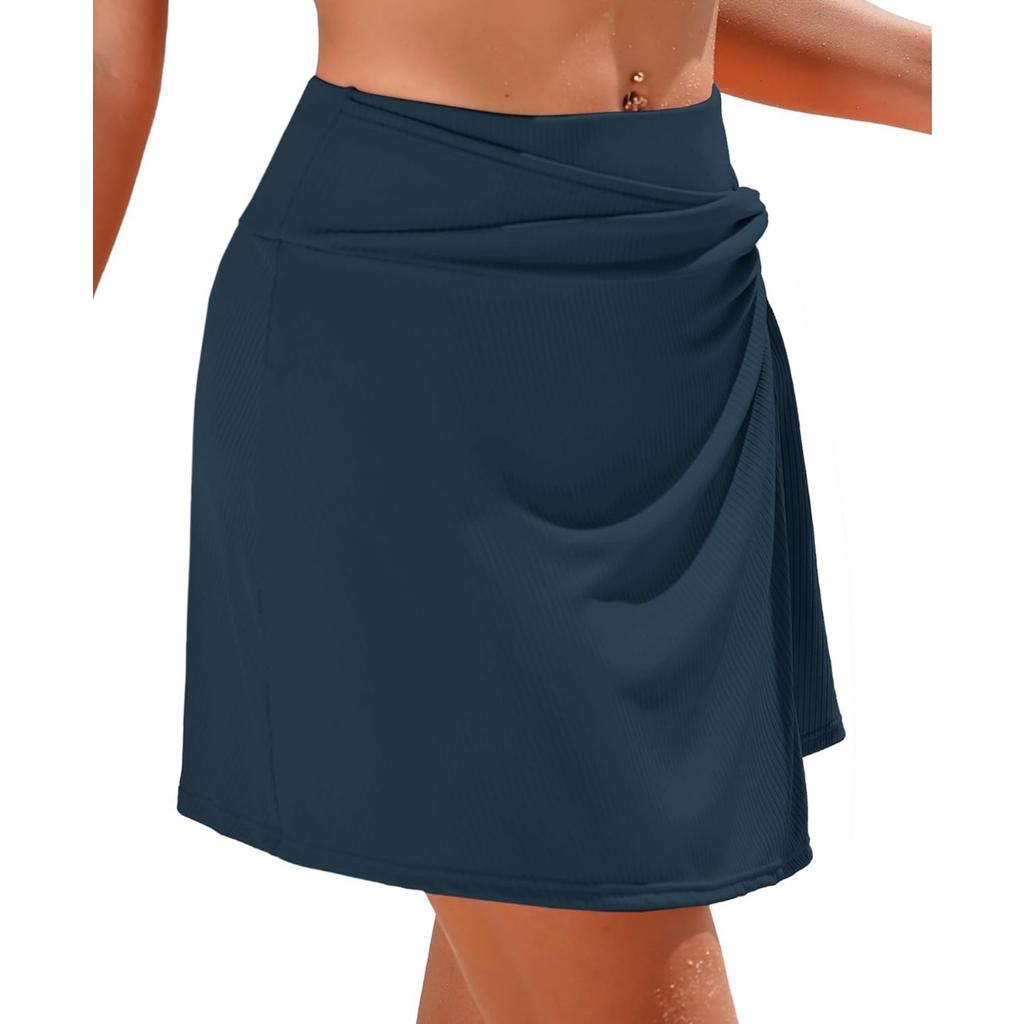 CHARMLEAKS Женская юбка для плавания с высокой талией, плиссированные шорты с перекрученной талией, танкини с контролем живота, плавки бикини с подкладкой