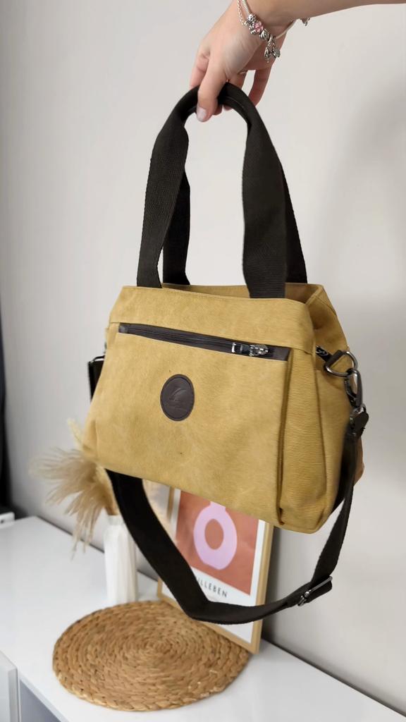 Эта сумка представляет собой универсальную и практичную модель, идеальную для повседневной носки или стиля кэжуал/милитари. 🔸На выбор несколько расцветок, размеры: 36 на 21 см. 🔸Сумка выполнена в трендовом хаки цвете. Материал выглядит как плотный текстиль, что гарантирует прочность и износостойкость. 🔸У сумки удобная прямоугольная форма. Контрастные темно-коричневые элементы (ручки, ремень и молнии) создают сбалансированный, строгий вид. На передней панели расположен круглый нашитый логотип. 🔸Сумка очень удобна для организации вещей благодаря своему дизайну. На лицевой стороне находится вместительный карман на молнии, а основной отсек также закрывается на молнию. 🔸Сумка оснащена как короткими ручками для ношения в руке, так и широким регулируемым ремнем на карабинах для ношения через плечо (кросс-боди). Рекомендую 👍 Ставлю ⭐ ⭐ ⭐ ⭐ ⭐ Спасибо продавцу ❤️ и Joom ❤️