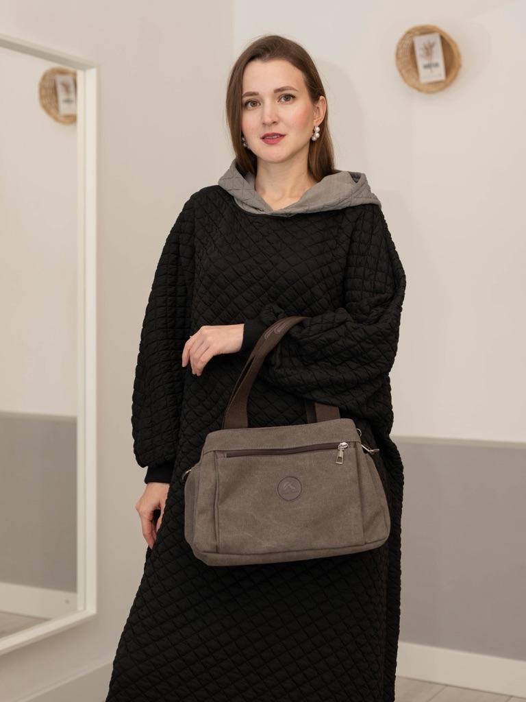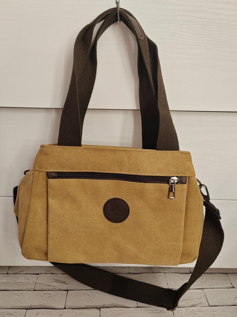 Удобная женская сумка 🔥 Размер сумки: Длина: 32 см. Ширина: 14 см. Высота: 22 см. Выполнена качественно. Сшита сумка из холста. Материал на ощупь мягкий и приятный. У сумки две ручки, на ручках сумки кожаные вставки. В комплекте ремешок, он длинный, удобно носить её на плече. Ремешок пристёгивается с помощью крючков, длина регулируется. Снаружи сумки с одной стороны есть карман на молнии. С другой стороны сумки есть ещё один карман на молнии. У сумки три отделения на молнии. Внутри среднего отделения сбоку карман на молнии, а с другой стороны два открытых кармана. Вся фурнитура сумки металлическая под серебро. Молнии на сумке ходят хорошо, не заедают. Подкладка сшита из полиэстера коричневого цвета. У продавца на выбор 5 расцветок. При распаковке неприятного запаха не было. Доставка около месяца. Трек-номер отслеживался. К покупке рекомендую 👍