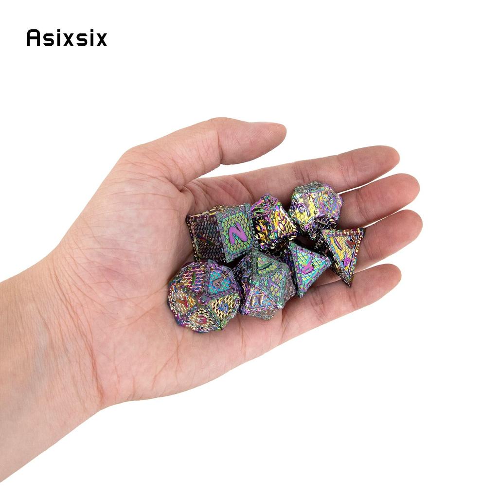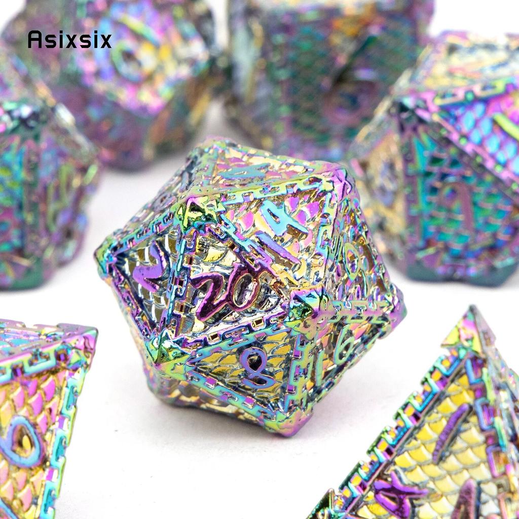 7 шт., разноцветные металлические кубики в виде рыбьей чешуи, набор твердых металлических многогранных кубиков, подходящий для ролевой игры, настольной игры, карточной игры