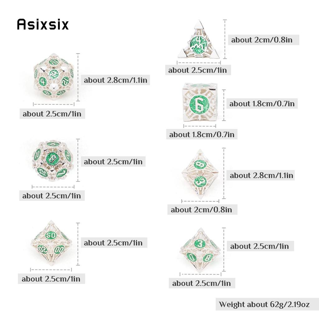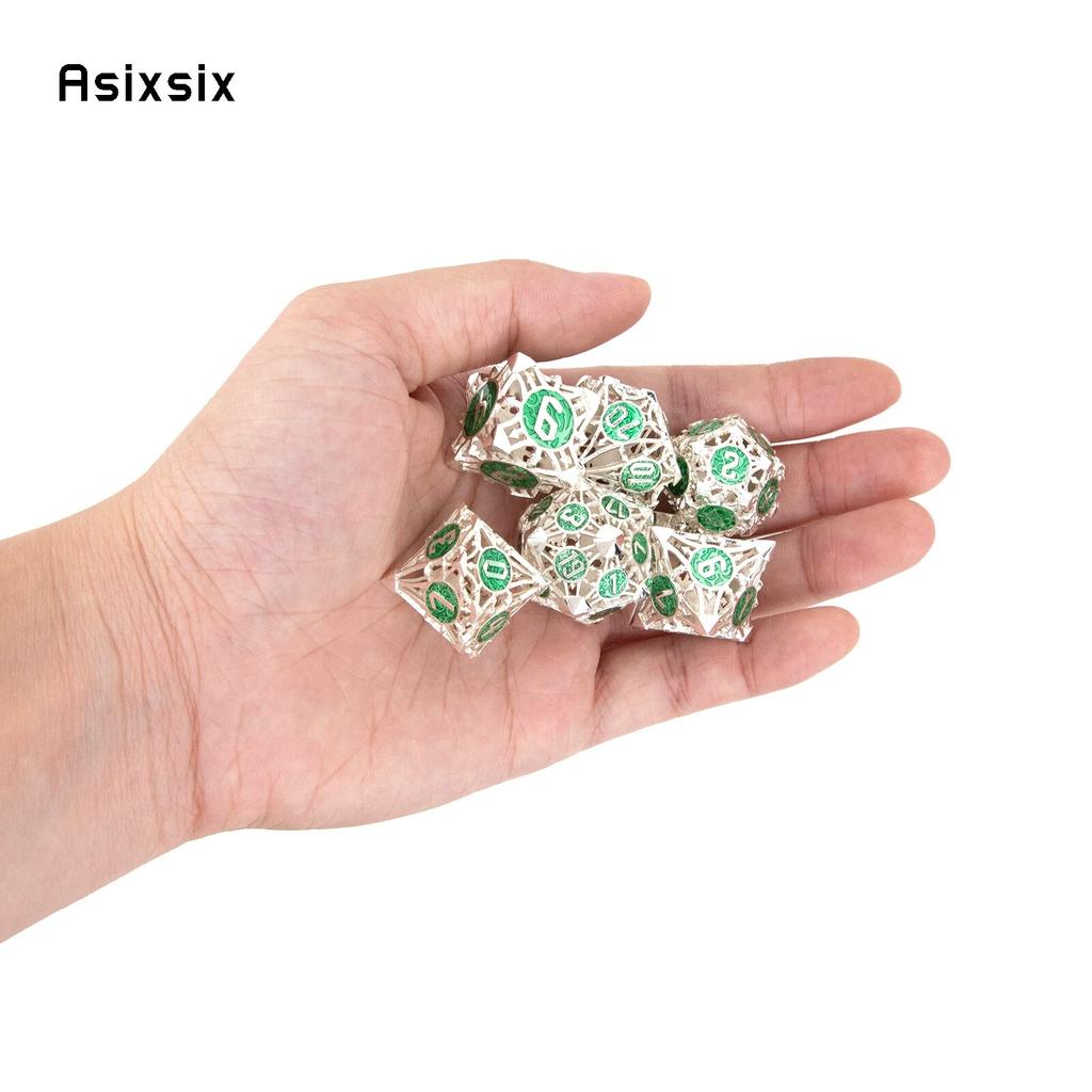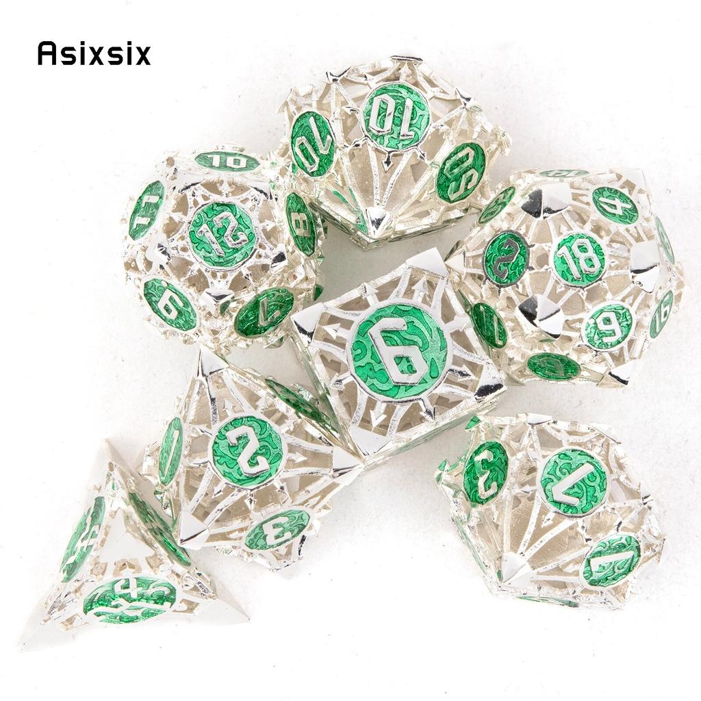 7 шт. серебристо-зеленые металлические кубики, набор полых металлических многогранных кубиков, подходящий для ролевой ролевой игры, настольной игры, карточной игры
