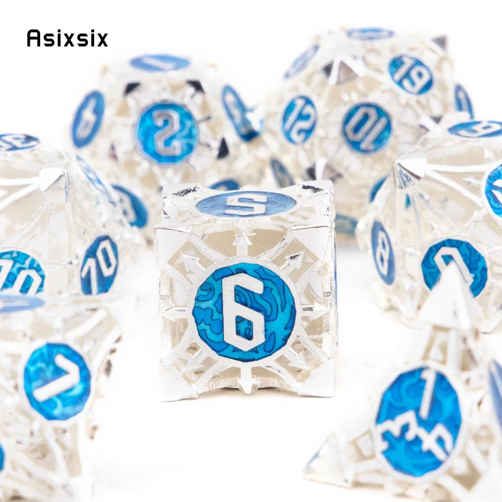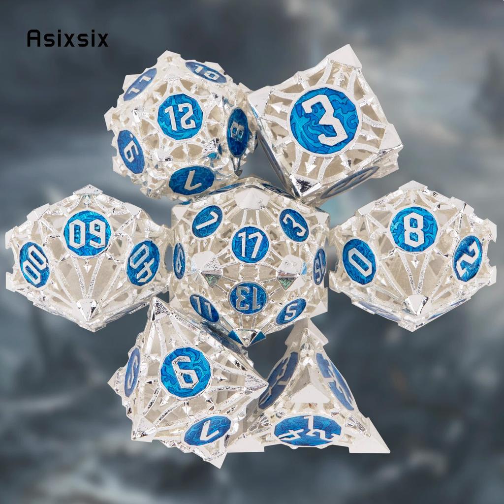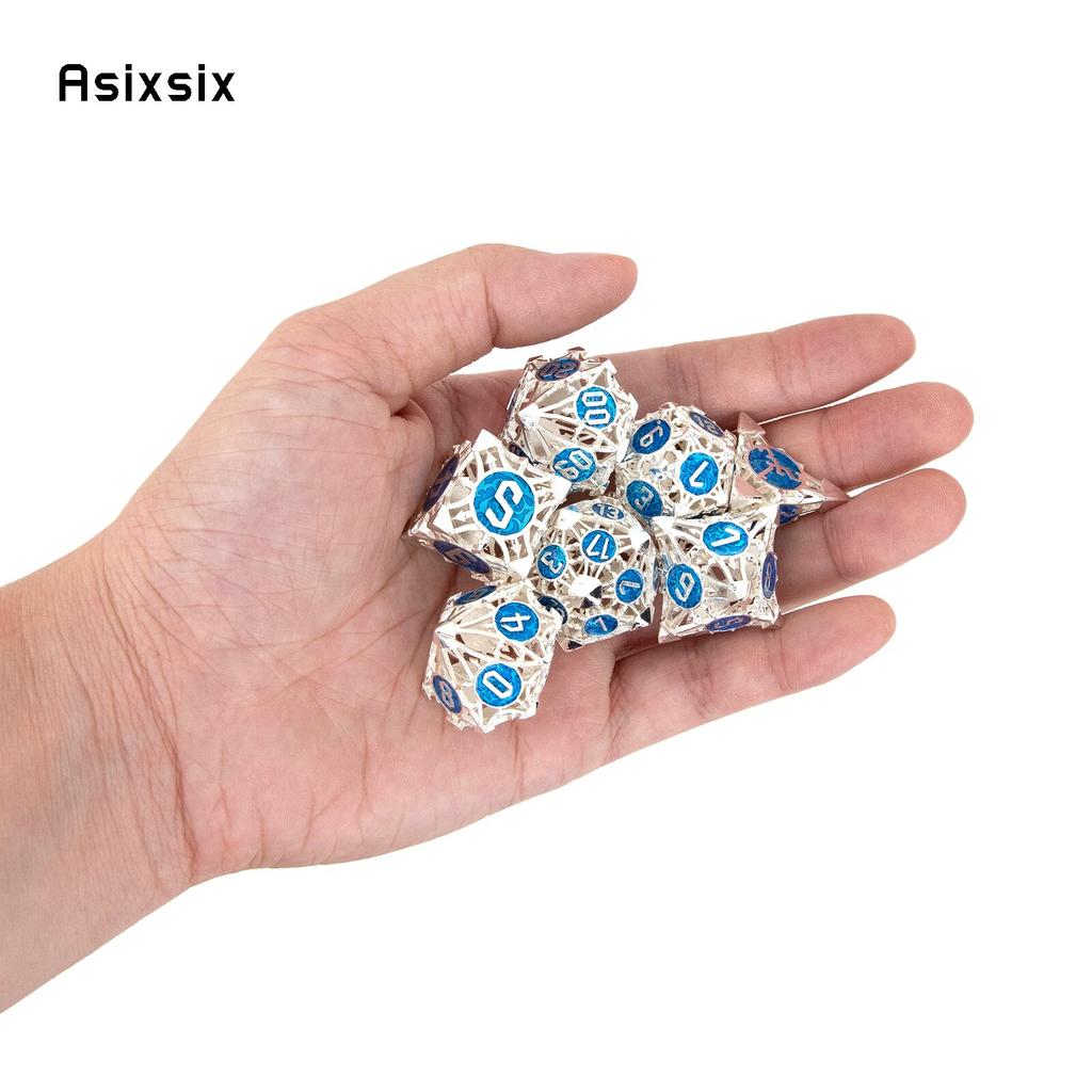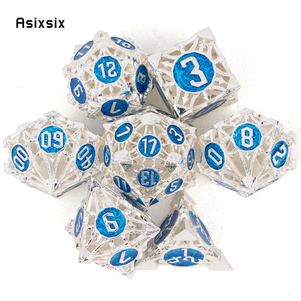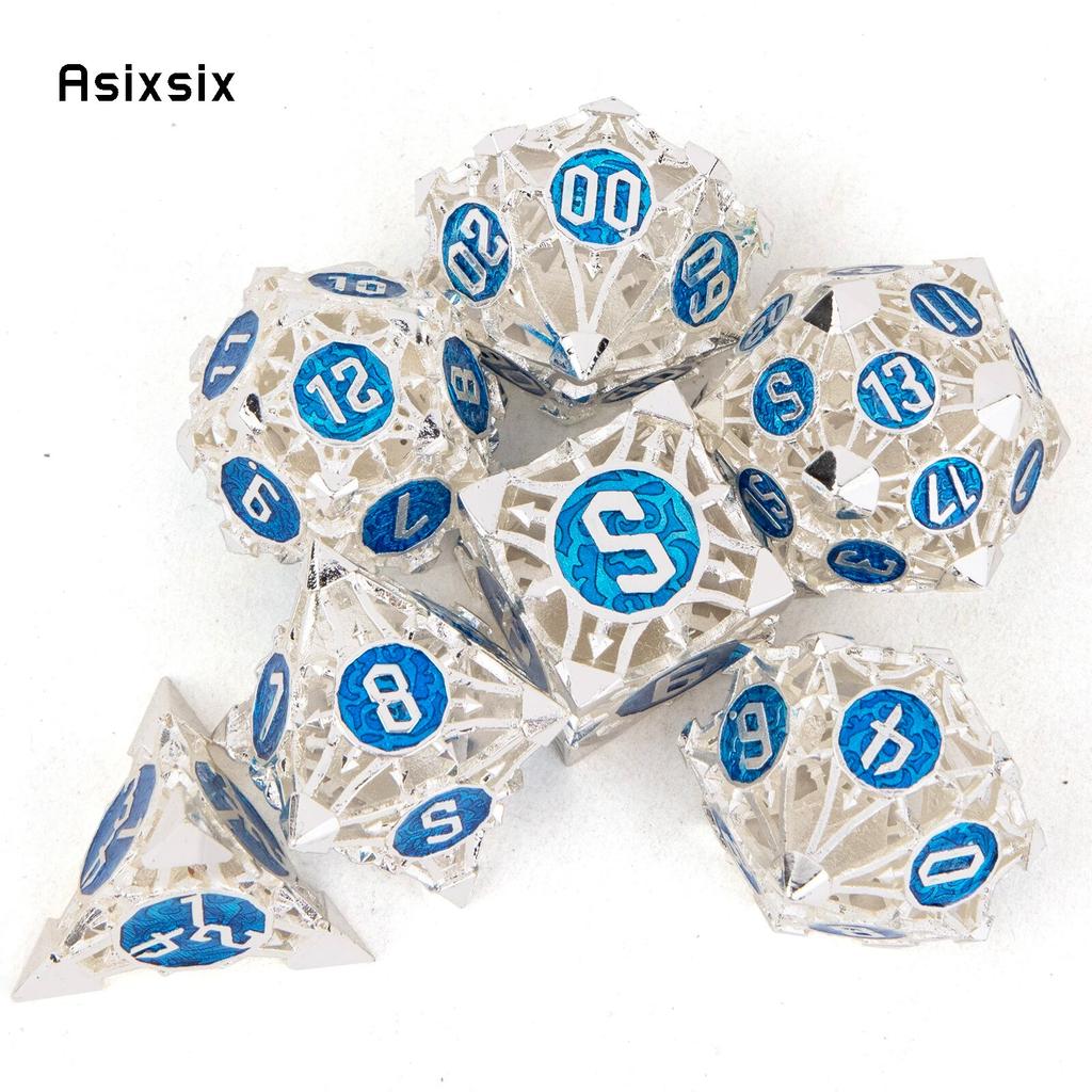 7 шт. серебристо-синие металлические игральные кости, набор полых металлических многогранных кубиков, подходящий для ролевой ролевой игры, настольной игры, карточной игры
