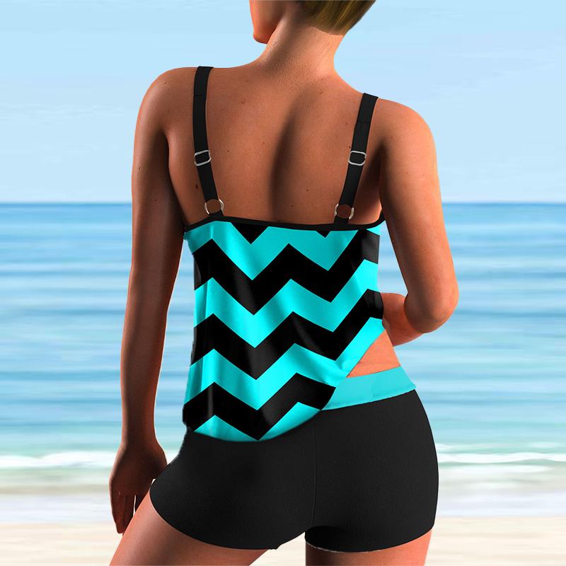 Женский купальник с бретелями сине-красные волны с принтом Бикини Купальник-танкини